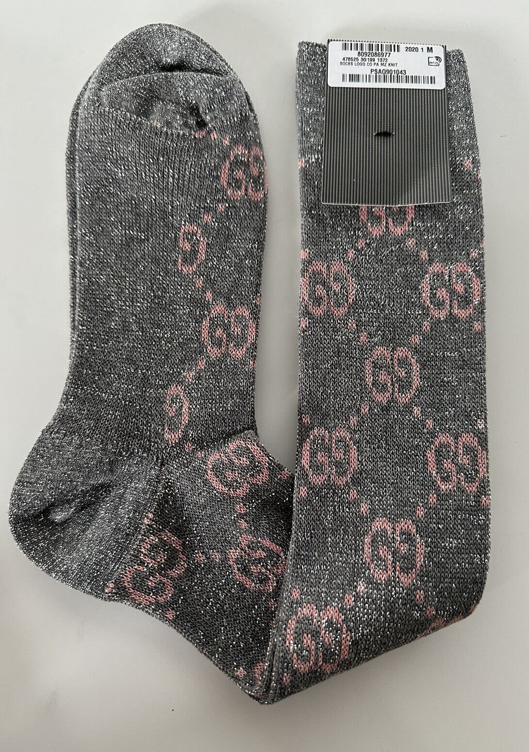 Calf and ankle socks continue to be an essential part of Gucci’s design narrative. Made from a shiny Lame And Cotton blend, these socks feature the GG Motif. The interlocking GG design is a nearly 100-year-old symbol, brought back into the forefront of Gucci’s designs in unexpected ways.
