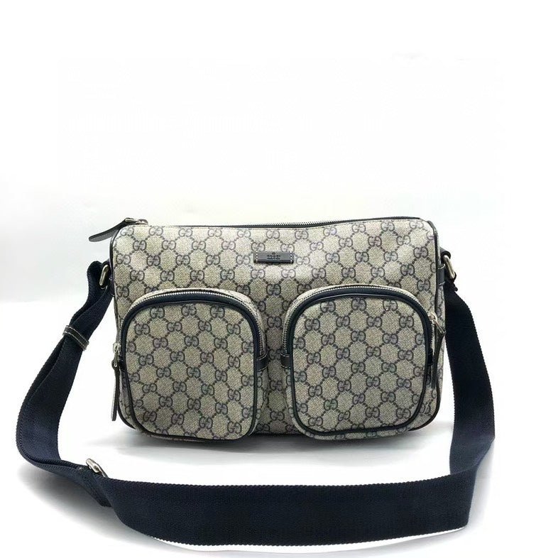 This used Gucci GG Supreme Crossbody Bag ZZ6626 offers both luxury and practicality for aficionados of used designer handbags. Crafted from Gucci’s iconic GG Supreme beige canvas, this bag features a comfortable black nylon strap and a well-organized interior with a leather finish, ideal for everyday use. It stands out as a timeless piece for those who adore vintage Gucci bags, showcasing minimal signs of wear. Perfect for collectors or anyone in love with the legacy of Gucci.