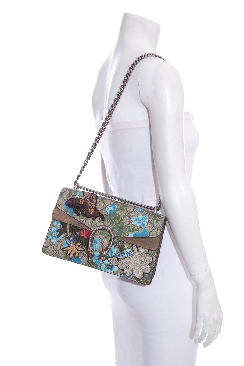 Gucci Dionysus Embroidered Canvas with Blue Floral and Bee Patch. This item is like new.