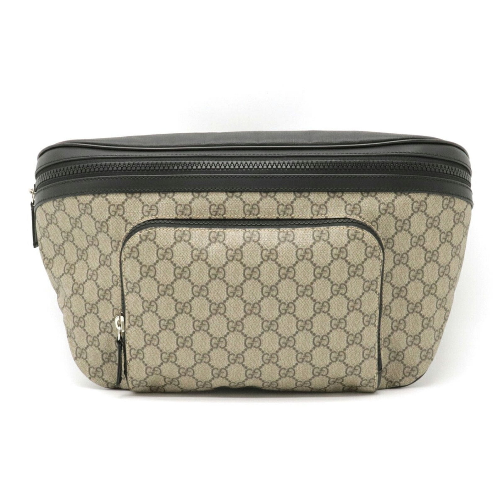 Gucci GG Supreme Body Bag Waist Pouch Hip Leather Beige Black 523309