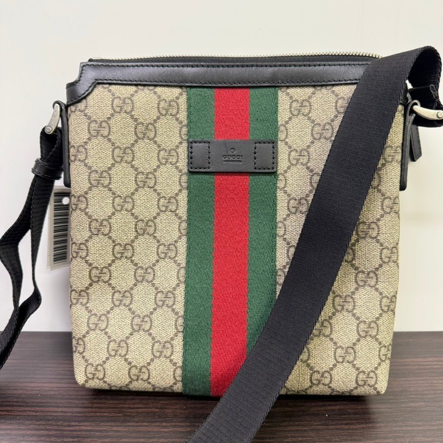 This used Gucci GG Supreme Crossbody LB109905 is a premium choice for those who appreciate style and practicality. The classic design is crafted from Gucci’s iconic GG Supreme canvas, adorned with a sleek black nylon strap, and features distinguished silver hardware. Inside, the bag has a beige cotton lining with useful compartments for easy organization. Whether you’re a collector or simply love vintage Gucci bags, this piece stands out among used designer handbags.