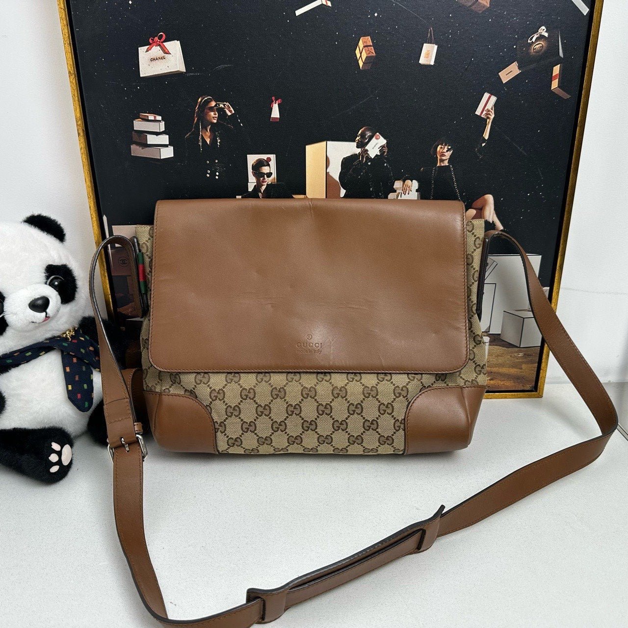 This used Gucci GG Supreme Messenger Bag is a stylish choice for those who appreciate classic luxury. Crafted from iconic brown GG canvas, it features a leather flap and adjustable shoulder strap for convenience. Perfect for anyone who collects vintage Gucci bags or loves used designer handbags, this piece combines elegance and functionality.