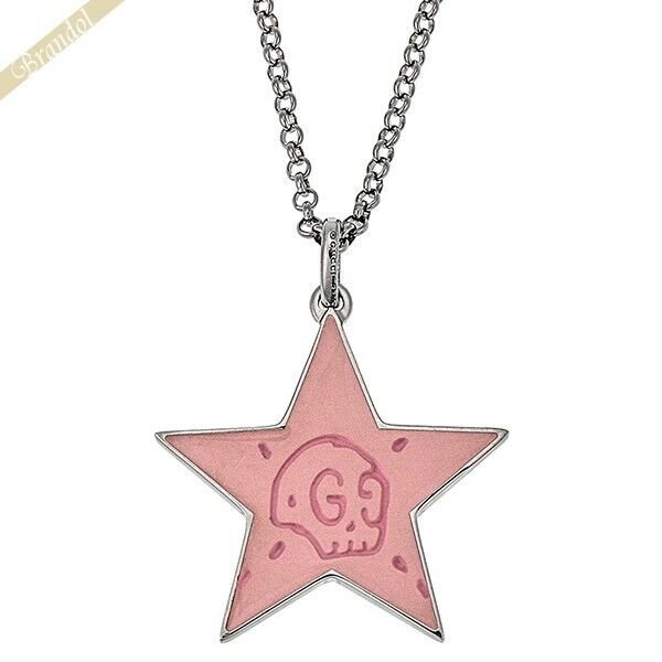 Elevate your style with the iconic Gucci Ghost Necklace Pendant. Crafted with a striking star design and signature GG chain in a chic pink and silver colorway, this piece exudes luxury and sophistication. The perfect accessory to add a touch of glamour to any outfit, this necklace is a timeless statement piece that showcases both elegance and edginess. Make a bold fashion statement with the Gucci Ghost Necklace Pendant and stand out from the crowd with its unique and eye-catching design.