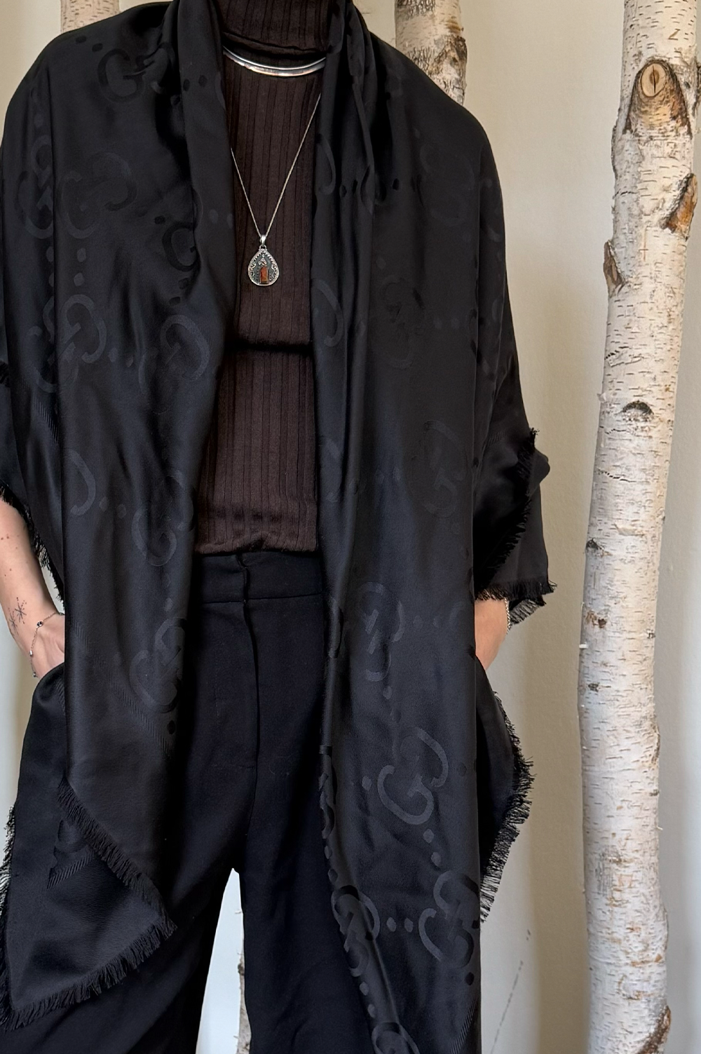 Be the first to review “GUCCI Giant GG Scarf Wool Silk Black | AlmaBagz”