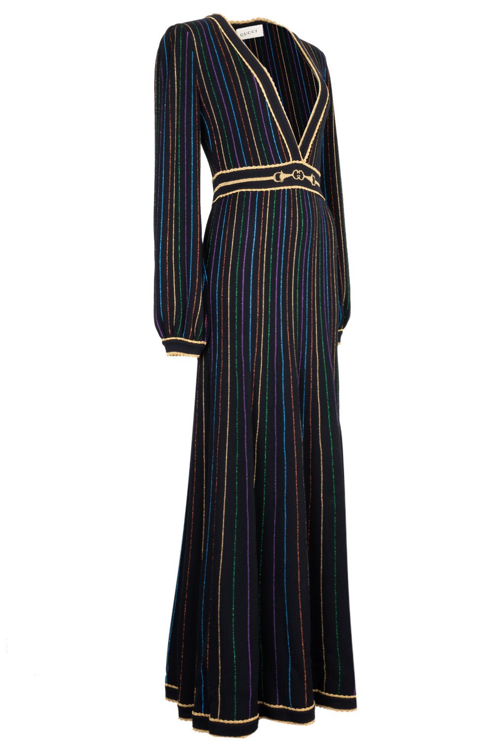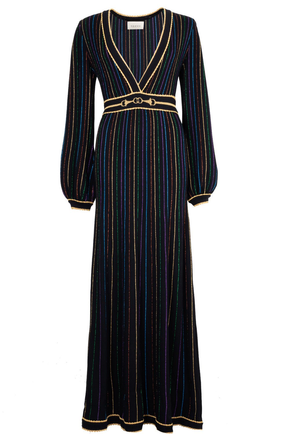 GUCCI 2020 Striped Horsebit Knit Maxi Dress Black