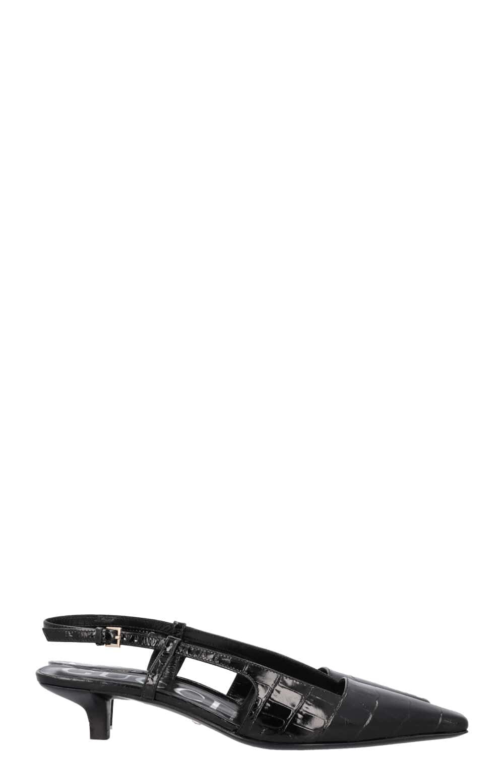 We Love: Die einzigartige Schuhspitze trifft auf das edle Croco-Muster und verwandelt diesen Kitten Heel in ein echtes Fashion-Statement.
