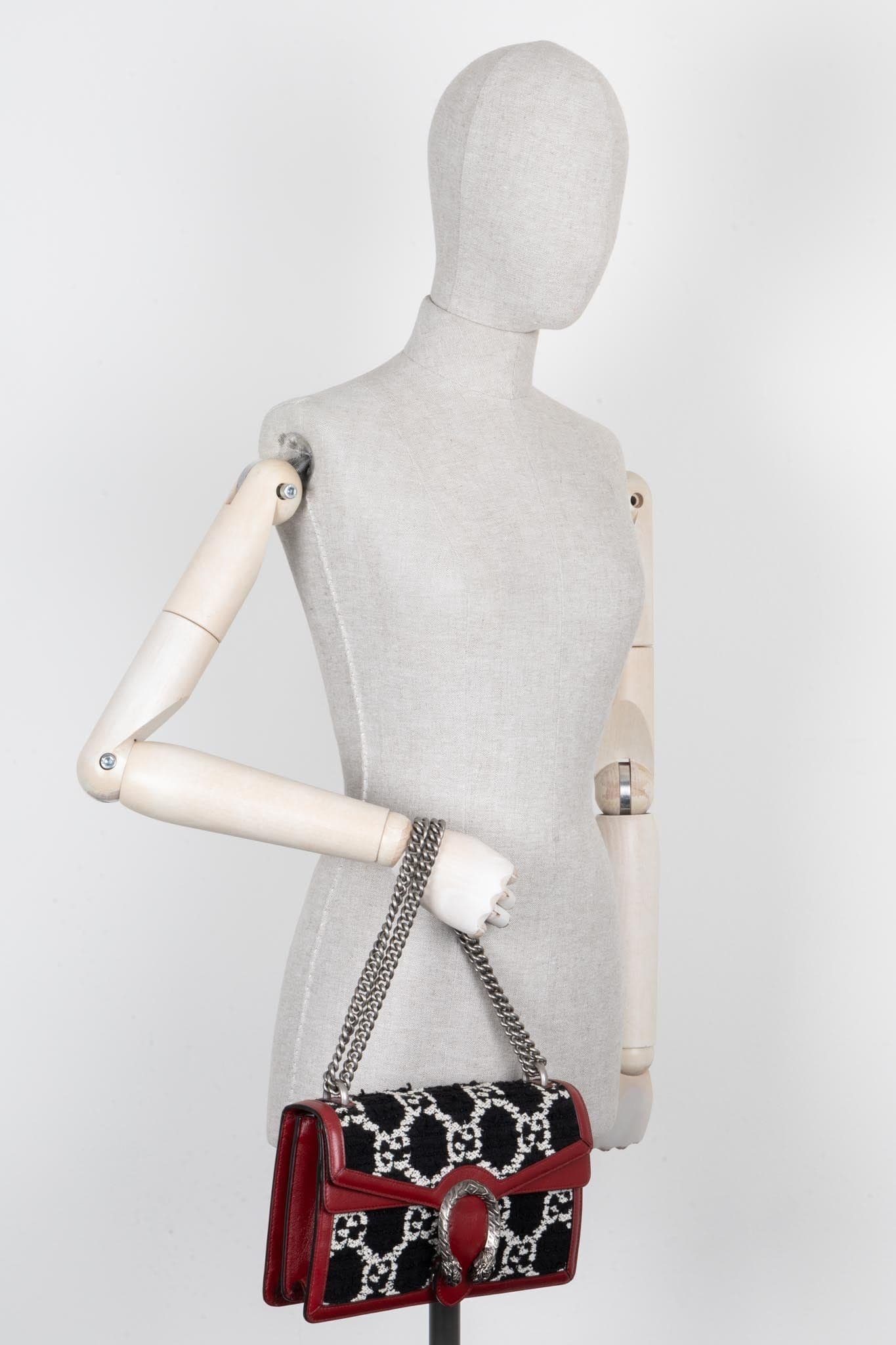 We Love: Gucci Monogram auf Tweed mit rotem Lederfinish. Wir lieben den Materialmix!