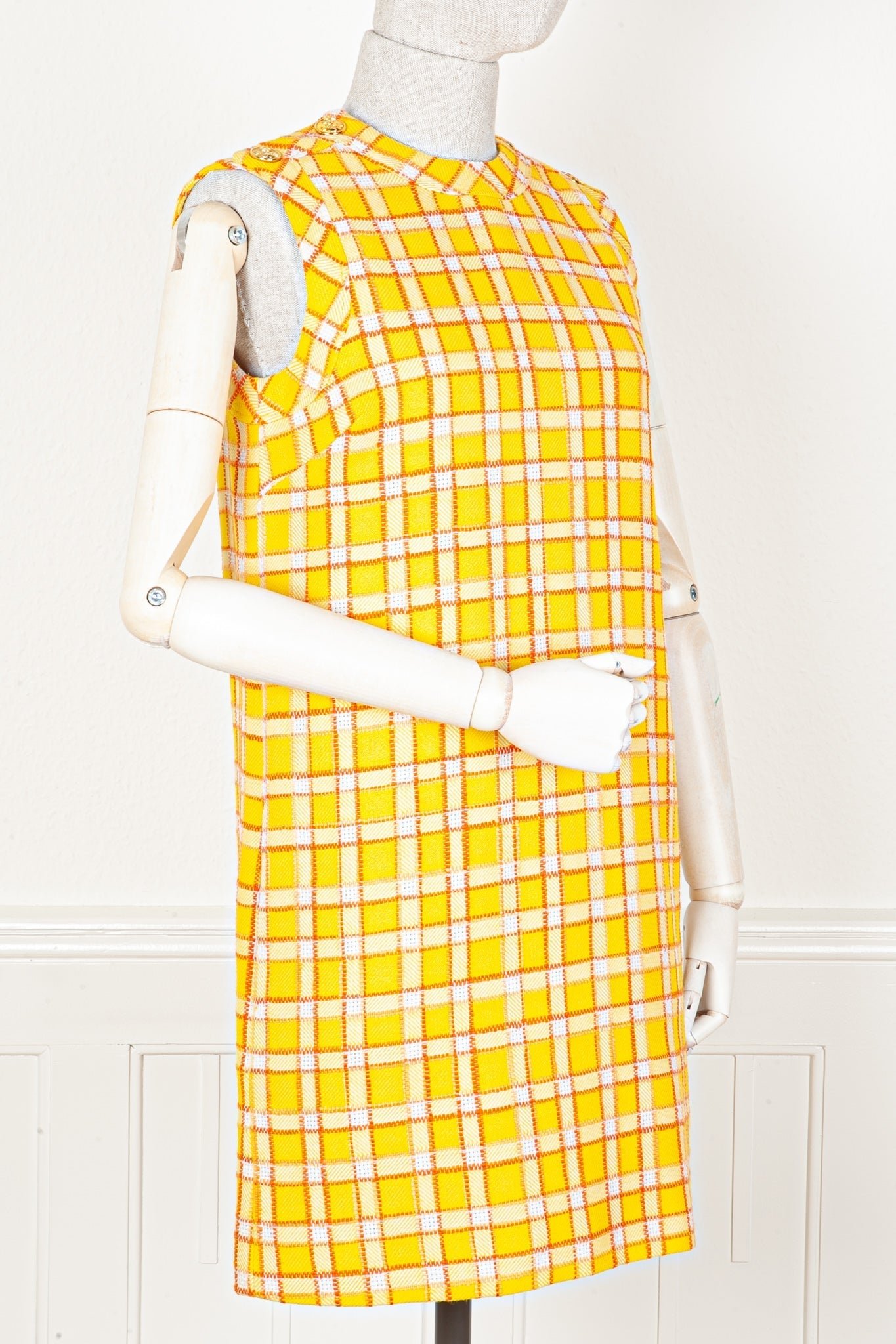 Innen: Sehr leichte Flecken und gezogene Fäden im Innenfutter, die Stoffaufhänger an den Achseln wurden herausgeschnitten