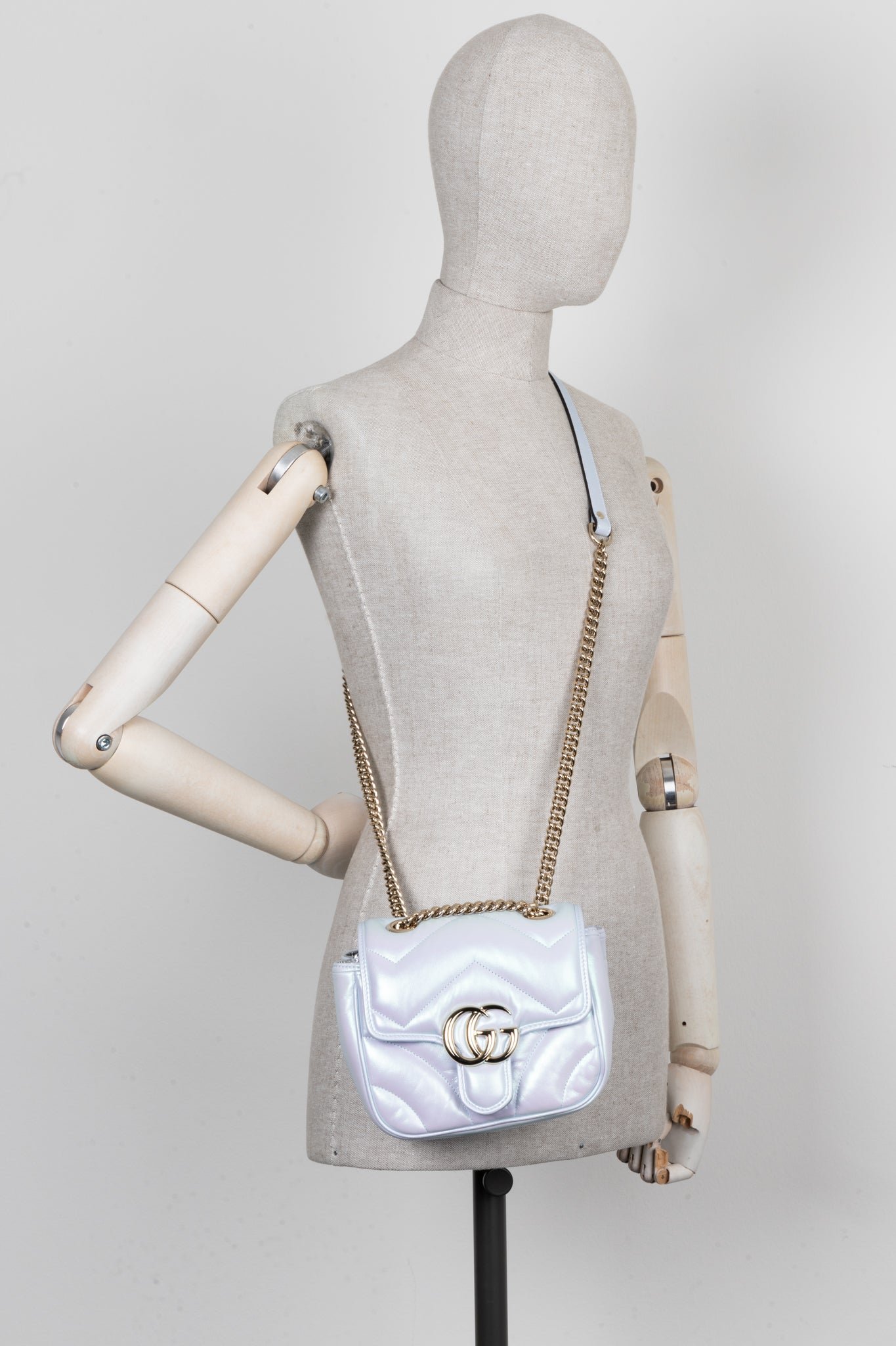 GUCCI GG Marmont Mini Shoulder Bag Blue Iridescent