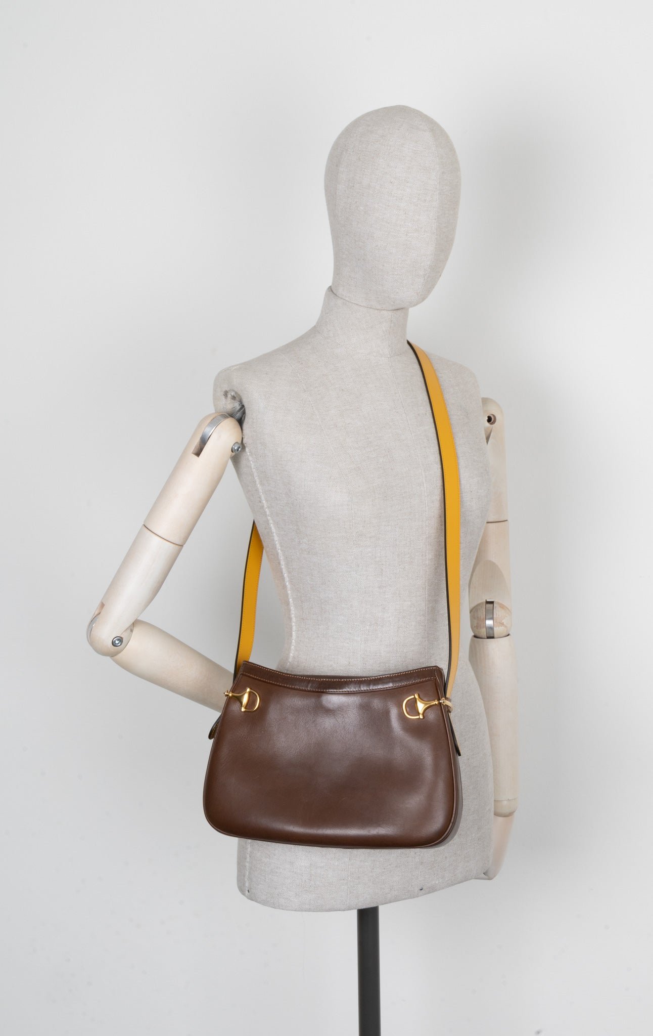 GUCCI Horsebit Crossbody Bag Brown Yellow
