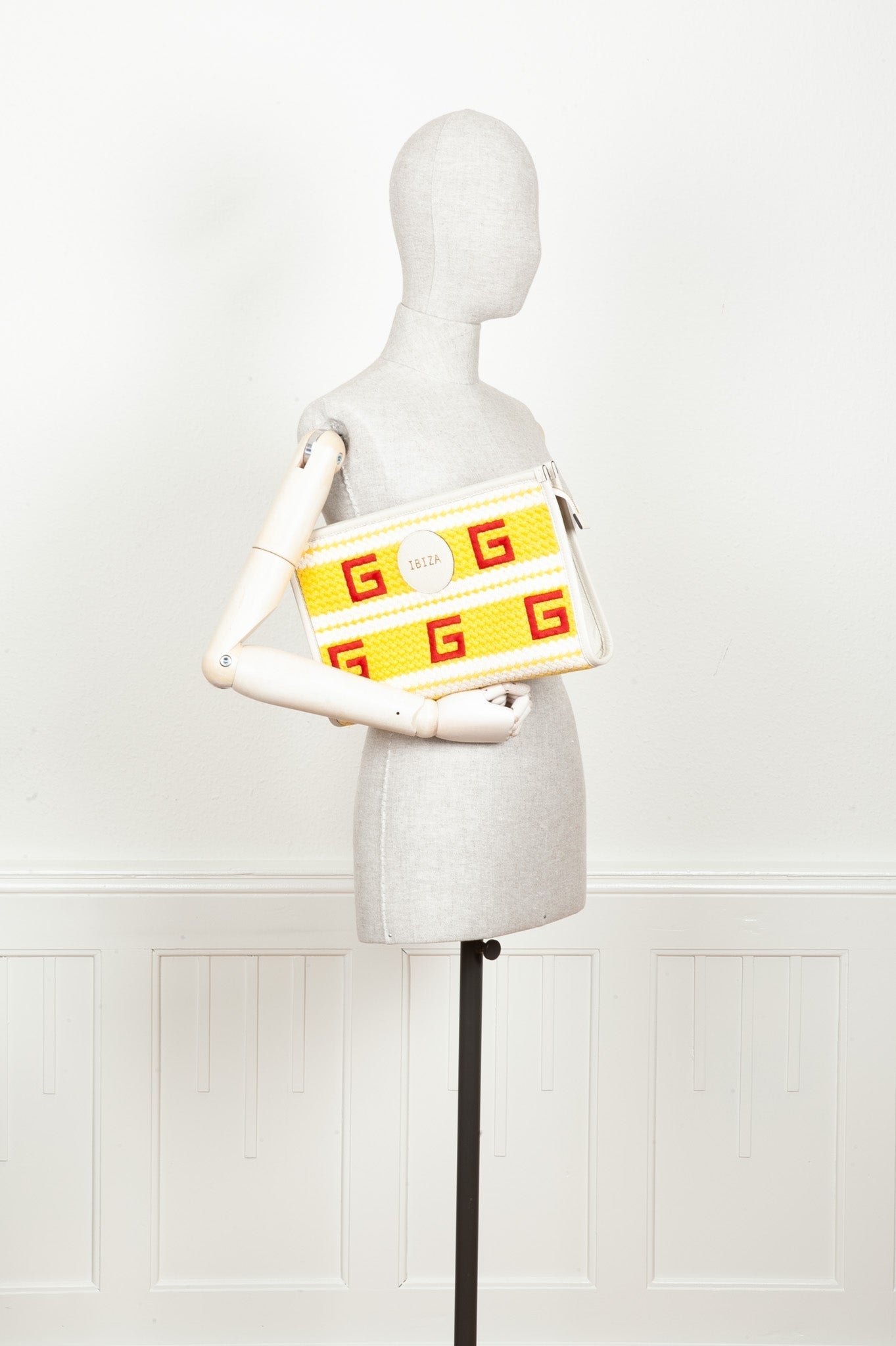 We Love: Die Limited Edition Ibiza Clutch von Gucci. Auffällige Initialen zieren die geflochtene Oberfläche