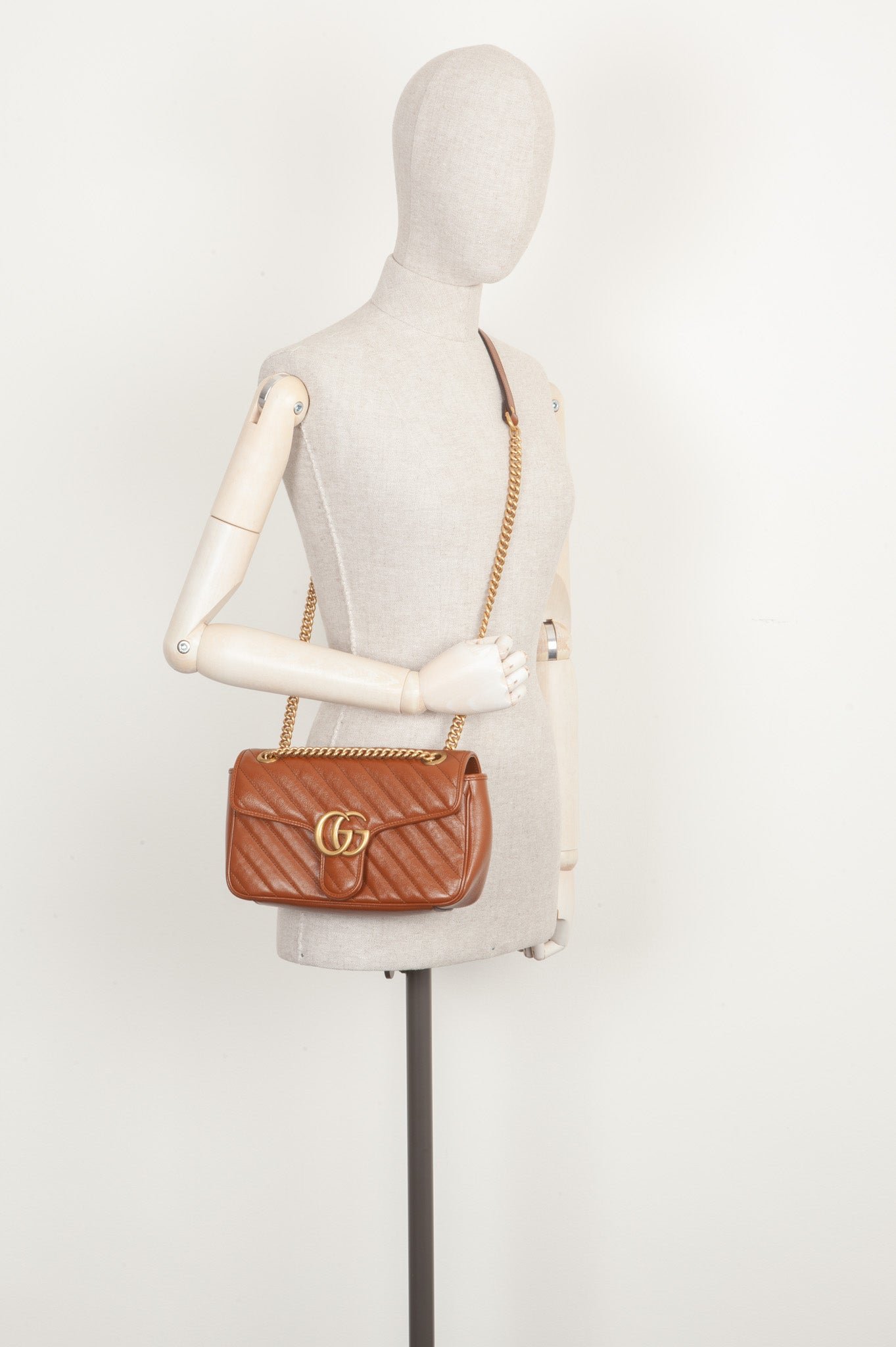 We love: Die Marmont aus braunem Leder mit goldener Hardware vollendet. Praktischer Crossbody Schulterriemen