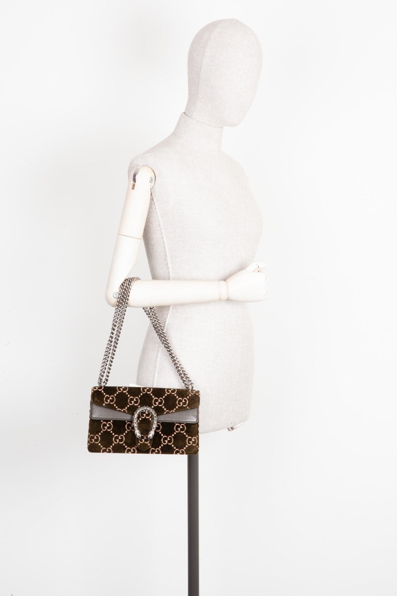 About: Die Dionysus wurde zum ersten Mal in der FW 2015 Kollektion vorgestellt und entwickelte sich in kürzester Zeit zu einer Gucci Favorite. Das Modell wurde nach dem griechischen Gott Dionysus benannt, welcher für Fruchtbarkeit der Vegetation und Euphorie steht. Man erkennt die Dionysus an ihrem unverkennbaren Tigerkopf Verschluss und den wild verzierten Details welche das Gucci Monogram schmücken.