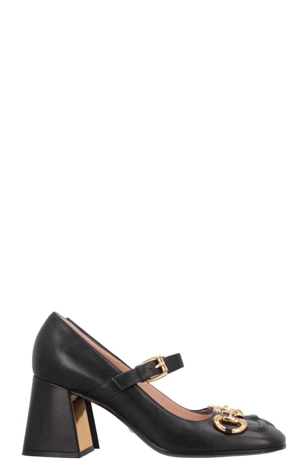 Das glänzende schwarze Leder der ikonischen Gucci Mary Jane Heels wird durch das ikonische Horsebit-Detail des Hauses veredelt, das an die Reitsporttradition von Gucci erinnert. Die klassische Mary-Jane-Silhouette erhält durch den auffälligen Blockabsatz eine raffinierte Note, die sowohl Komfort als auch Stil bietet. Diese Schuhe sind vielseitig kombinierbar – perfekt für formelle Anlässe oder als stilvoller Akzent zu lässigen Outfits. Ein echter Klassiker mit Wiedererkennungswert!