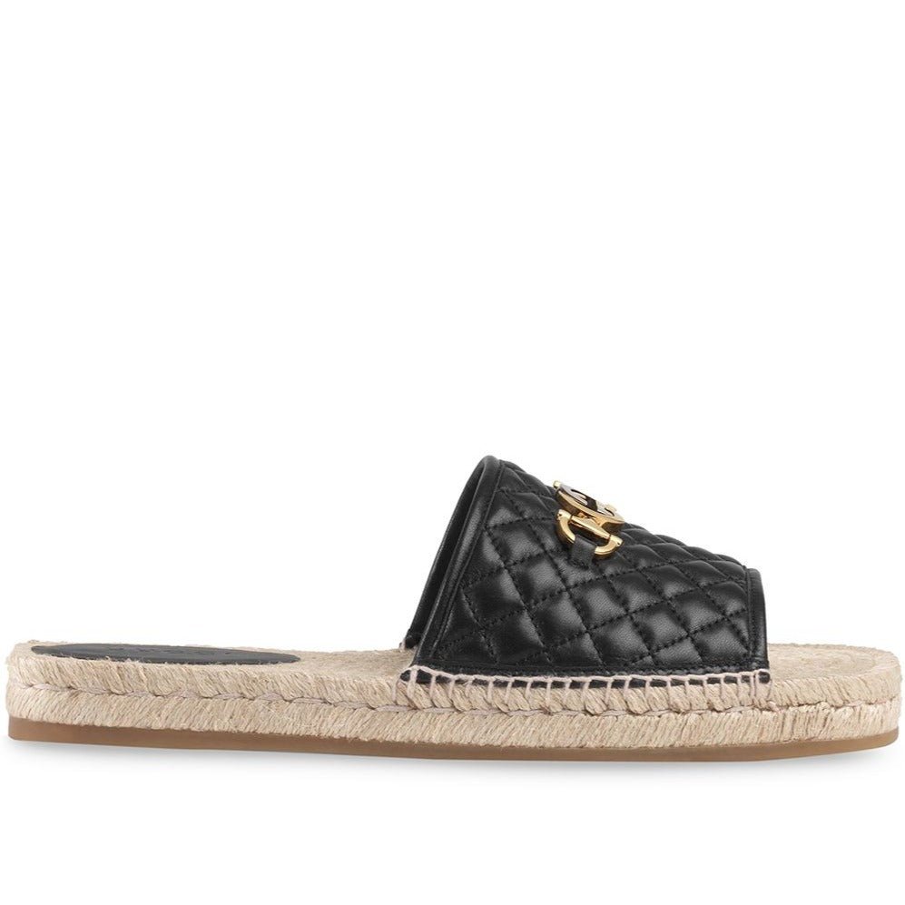 - Black Horsebit Quilted Espadrille Slide Sandals