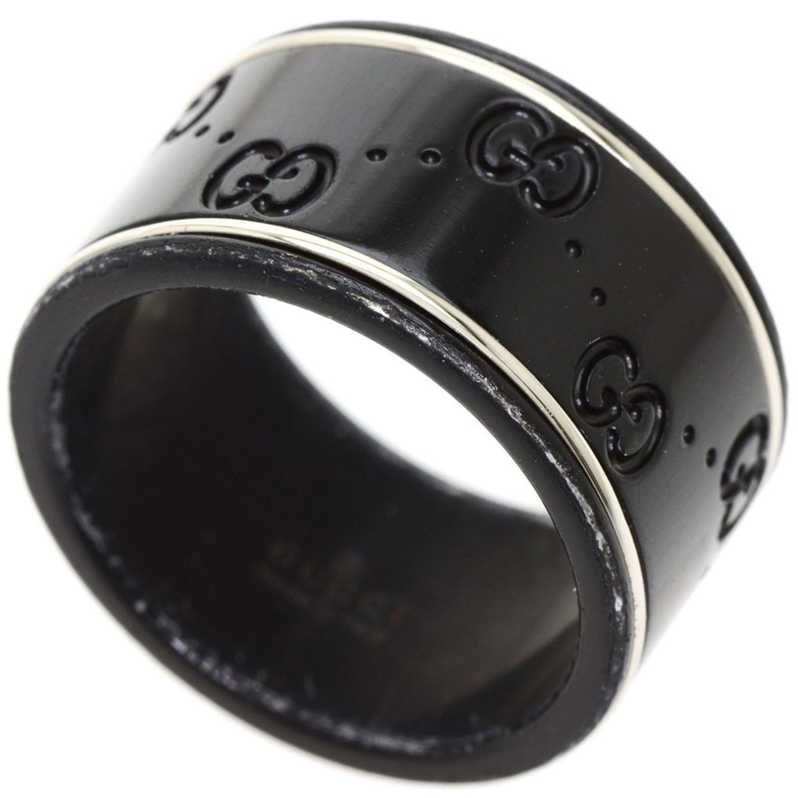 Gucci Icon Wide Black Corundum #12 Ring K18 White Gold Ladies GUCCI