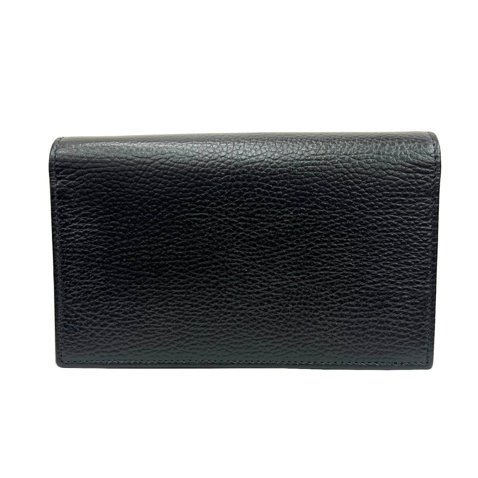 GUCCI Interlocking G Chain Shoulder Bag Long Wallet Clutch Calfskin Leather Black 615523