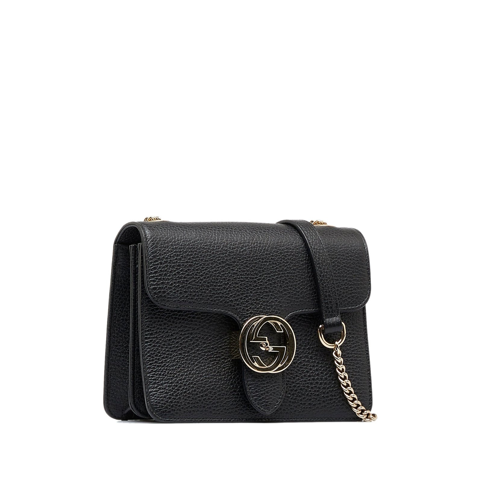 The combination of texture and softness gives this Bag a touch of practical elegance. The finely grained black calfskin is complemented by pale gold-tone hardware. The interior features three compartments, slip pockets and a zippered pocket. The Bag can be carried by hand or crossbody.