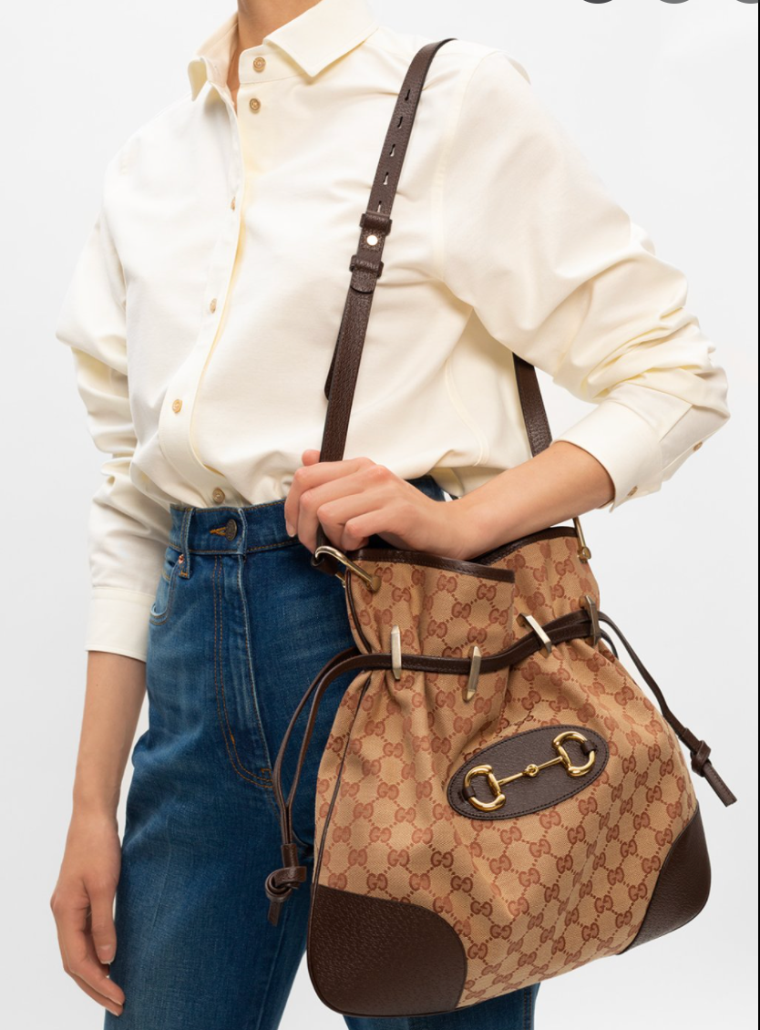 Iconic vintage-inspired silhouette for the 1955 Horse bit bag by Gucci. Made of GG Supreme fabric, it is finished with brown leather and illuminated by the golden front clamp. It is already a must-have. Carry it on your shoulder to instantly elevate your every look