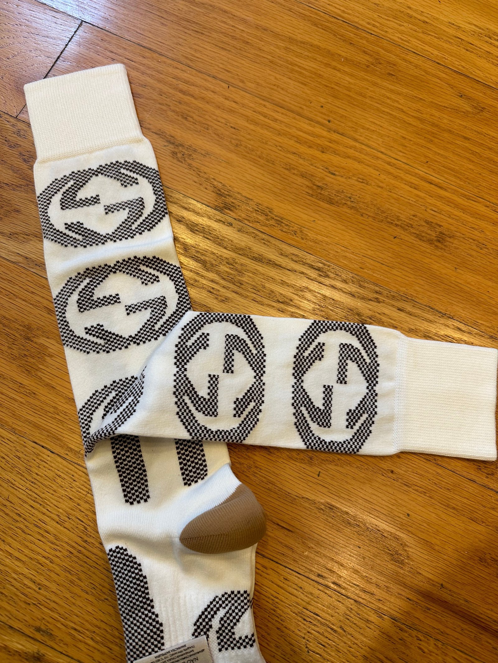 - Gucci Interlocking GG Houndstooth Knee High Sock in Neutral Tones