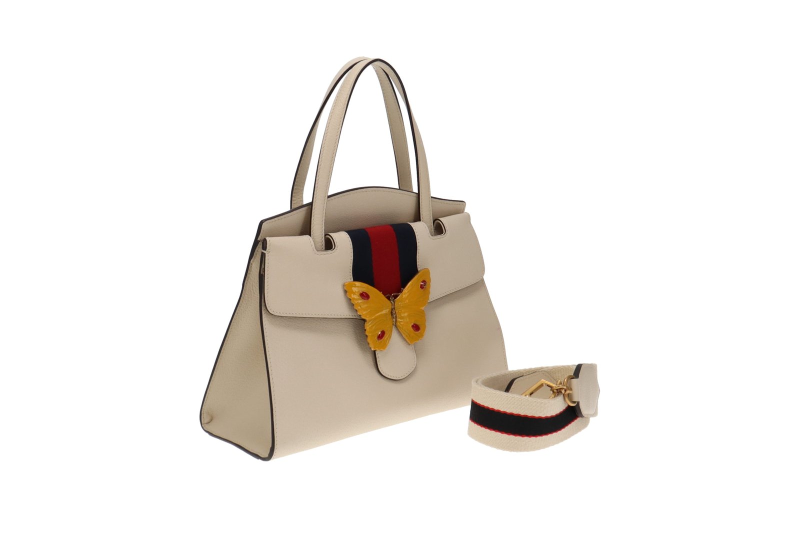 Gucci Ivory Leather Linea Medium Butterfly Totem Tote | AlmaBagz