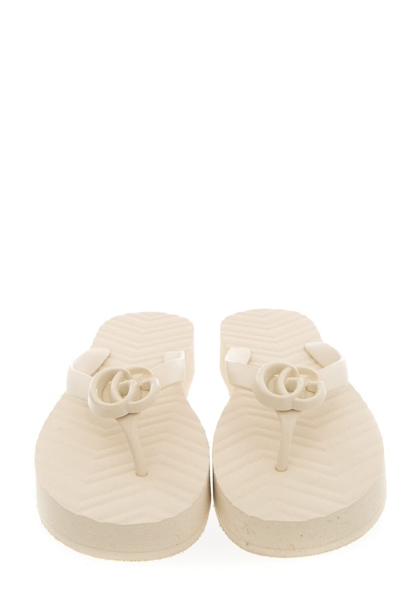 Gucci Ivory Rubber Logo Flip Flop Sandals. This item has never been .