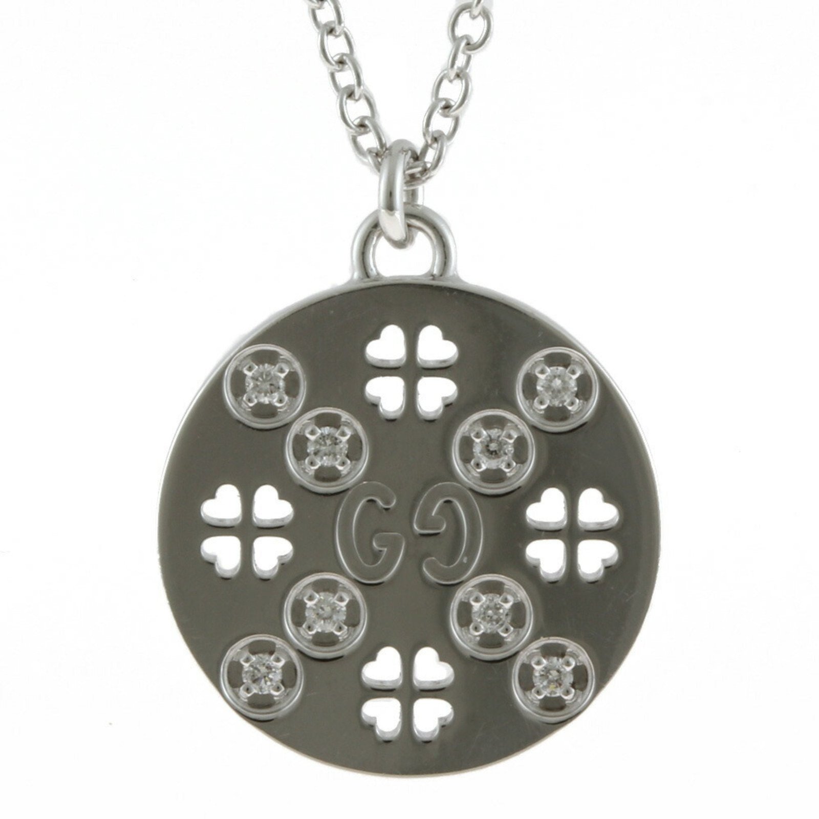 Gucci K18WG Necklace GG Icon Diamond Heart Clover Silver Ladies 18K K18 White Gold Accessory