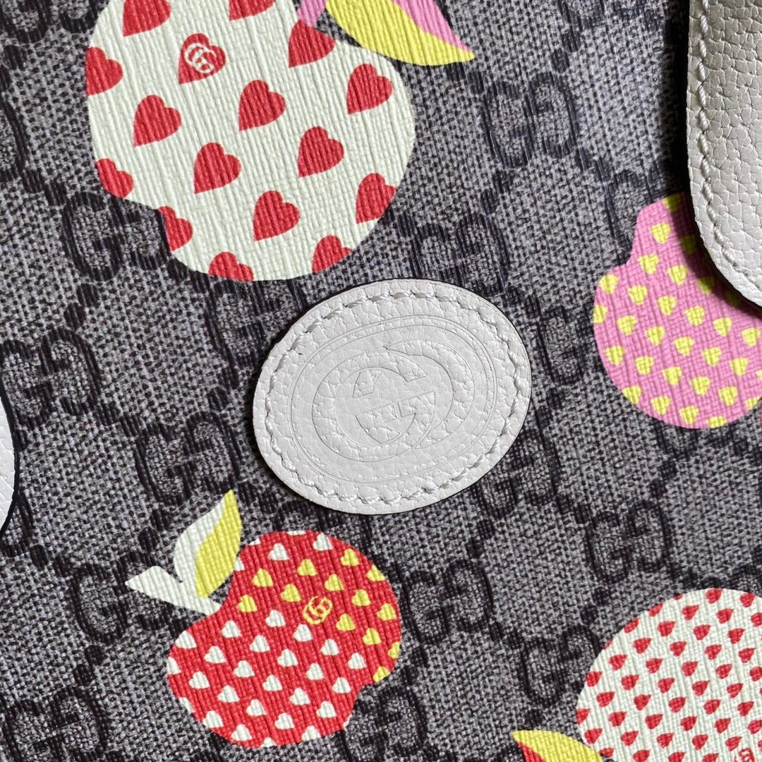 An emblem of the Gucci’s playful spirit, fruits and vegetables have become contemporary House codes that animate the latest collections. Speaking to this theme, this small tote is defined by a whimsical apple motif.
