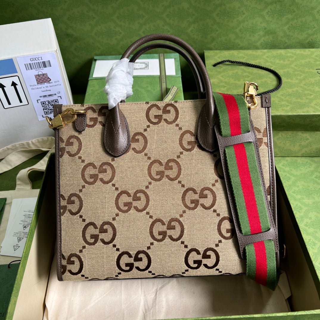 Introduced for the Aria Collection, the GG motif appears in a maximalist, jumbo-sized version atop this tote bag. The House’s logo symbols continue to be reimagined each season, celebrated in different ways. Pieces with versatile ways to wear and style embrace each person who is part of the House’s individual spirit.