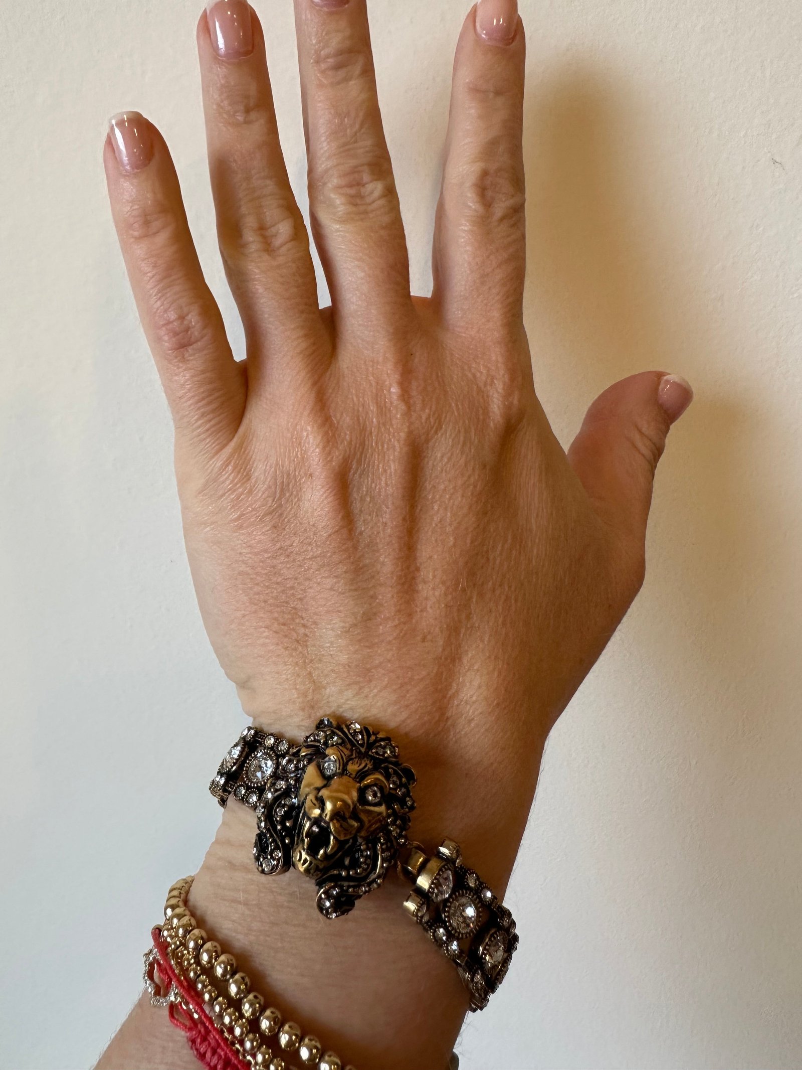 Be the first to review “Gucci Lion Head Crystal Bracelet in Gold Metal | AlmaBagz”