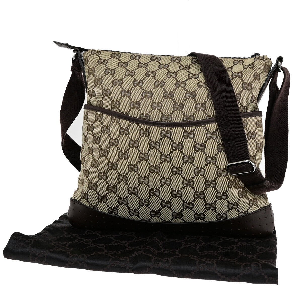 Elevate your style with the iconic Gucci Logo GG Pattern Shoulder Bag. Crafted in Italy from premium canvas and leather in a sophisticated brown hue, this bag exudes luxury and elegance. The signature GG pattern adds a touch of classic Gucci charm, making it a timeless accessory for any fashion enthusiast. With its versatile shoulder strap design, this bag seamlessly blends fashion and functionality, perfect for any occasion. Make a statement with the Gucci Logo GG Pattern Shoulder Bag and showcase your impeccable taste in fashion.