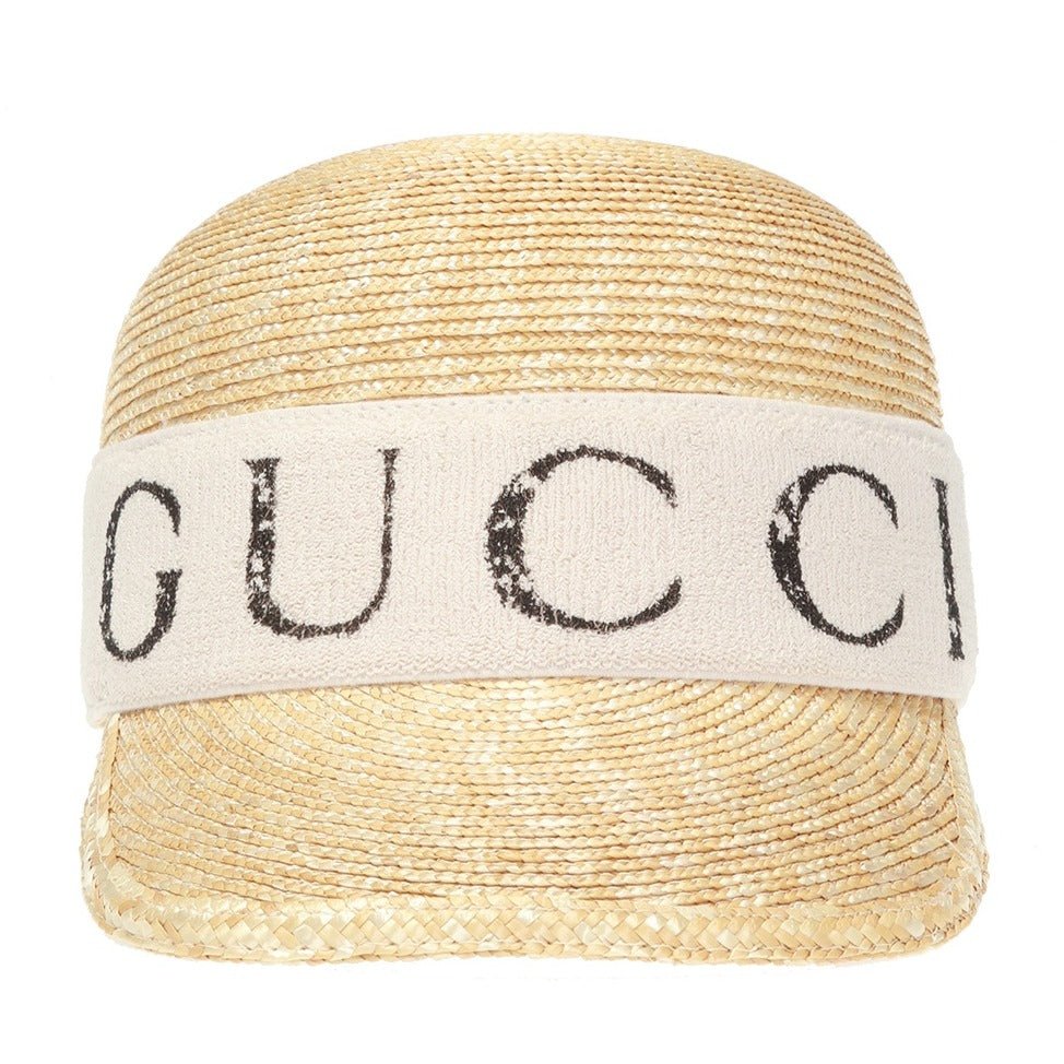 The Gucci Logo-print Straw Baseball Cap in White is woven in Italy from 100% straw and accented y a headband made in a spongey cotton blend. This hat has a baseball cap silhouette and features a slightly curved brim and Gucci branded, white headband around the base.