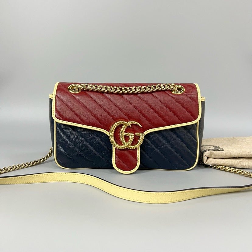 This exquisite Gucci GG Marmont bag is a testament to timeless elegance and sophistication. Crafted from premium leather, its distinct braided pattern and striking red exterior make it a fashionable choice for any occasion. The iconic GG logo adds a touch of luxury, while the medium size ensures it’s practical for daily use. Don’t miss out on owning a piece of Gucci’s rich heritage.