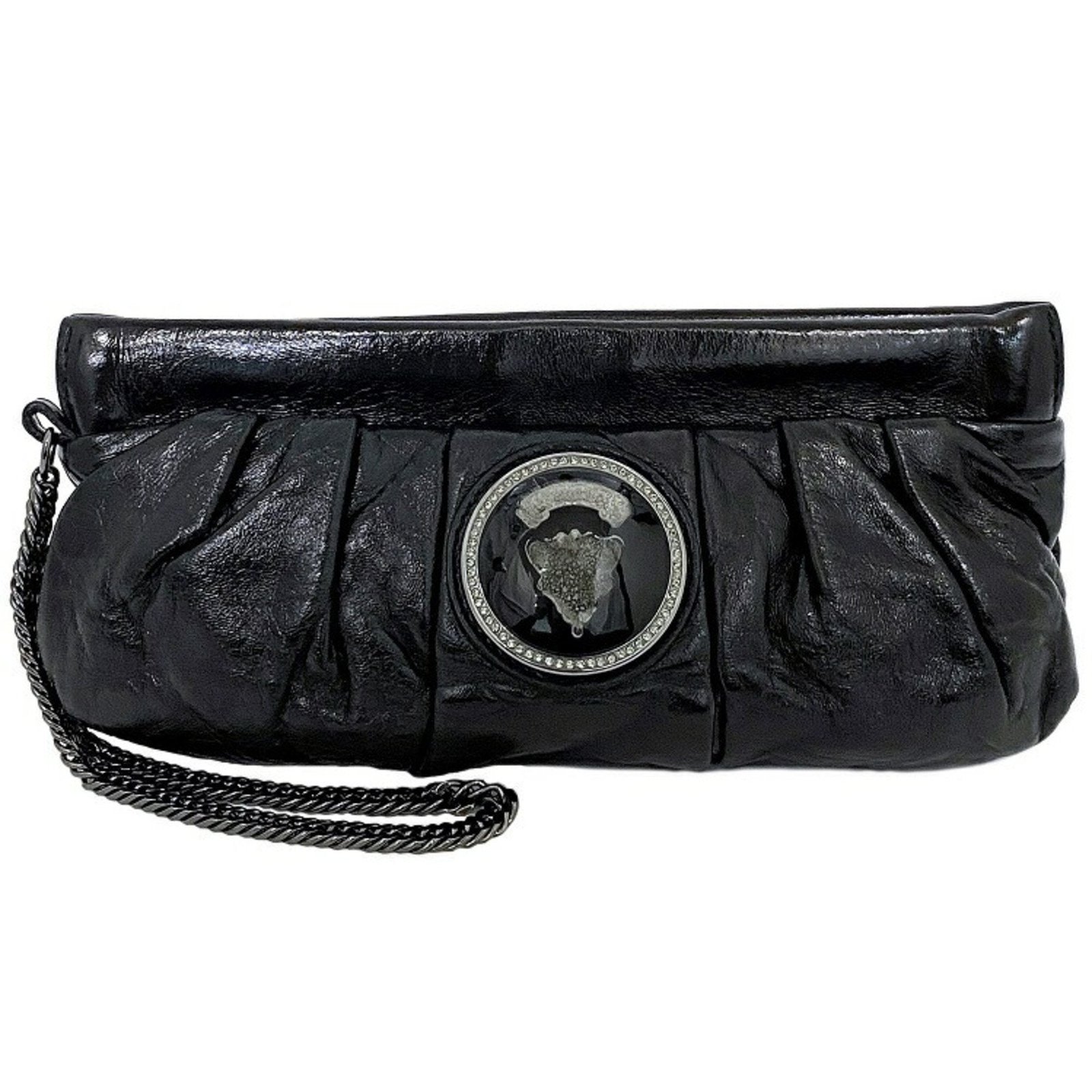 Gucci Mini Clutch Bag Black Silver Histeria 226248 Chain Patent Leather GUCCI Pouch Handbag Enamel Ladies