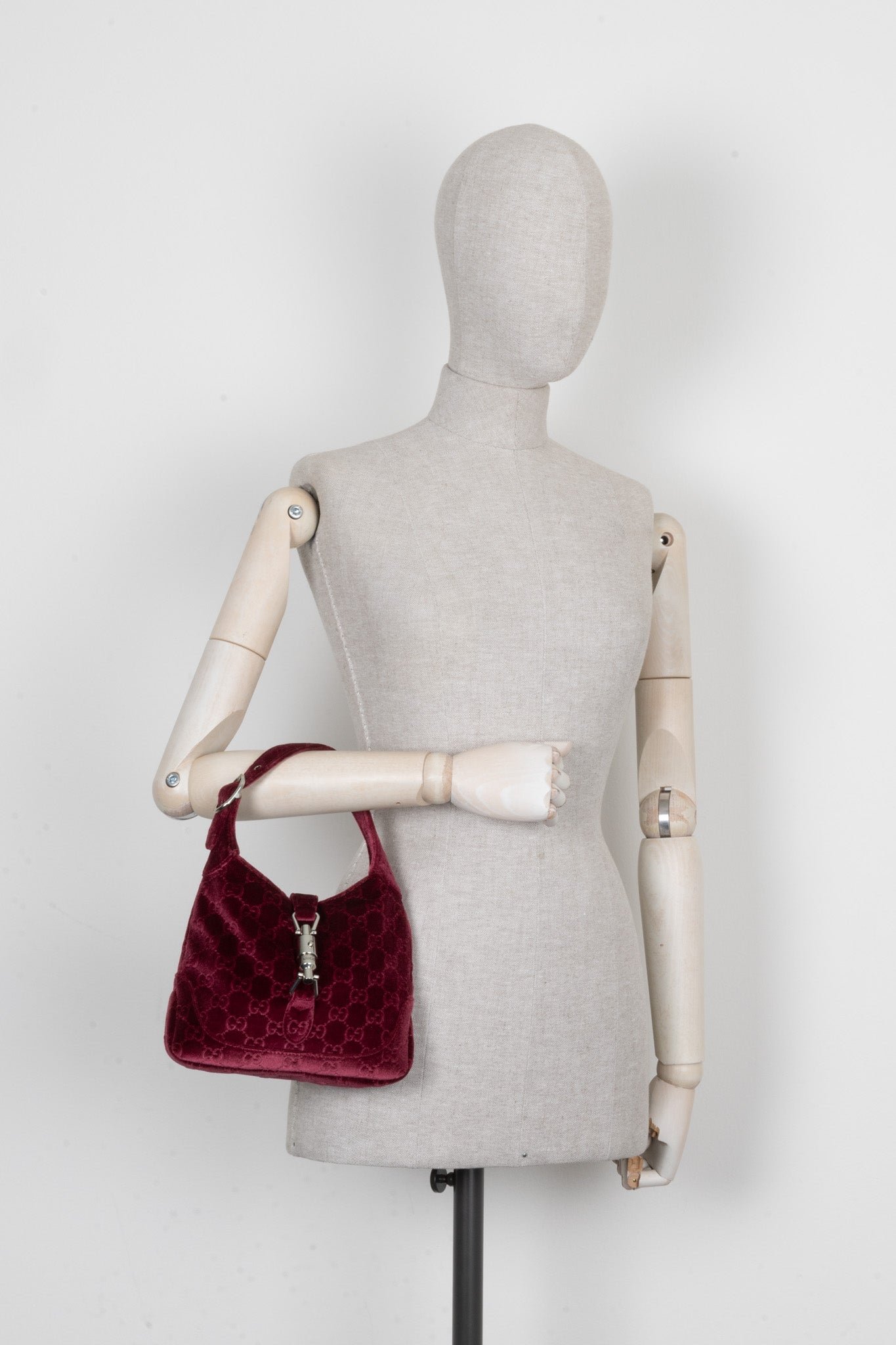 GUCCI Mini Jackie 1961 Velvet Jacquard Brugundy | AlmaBagz