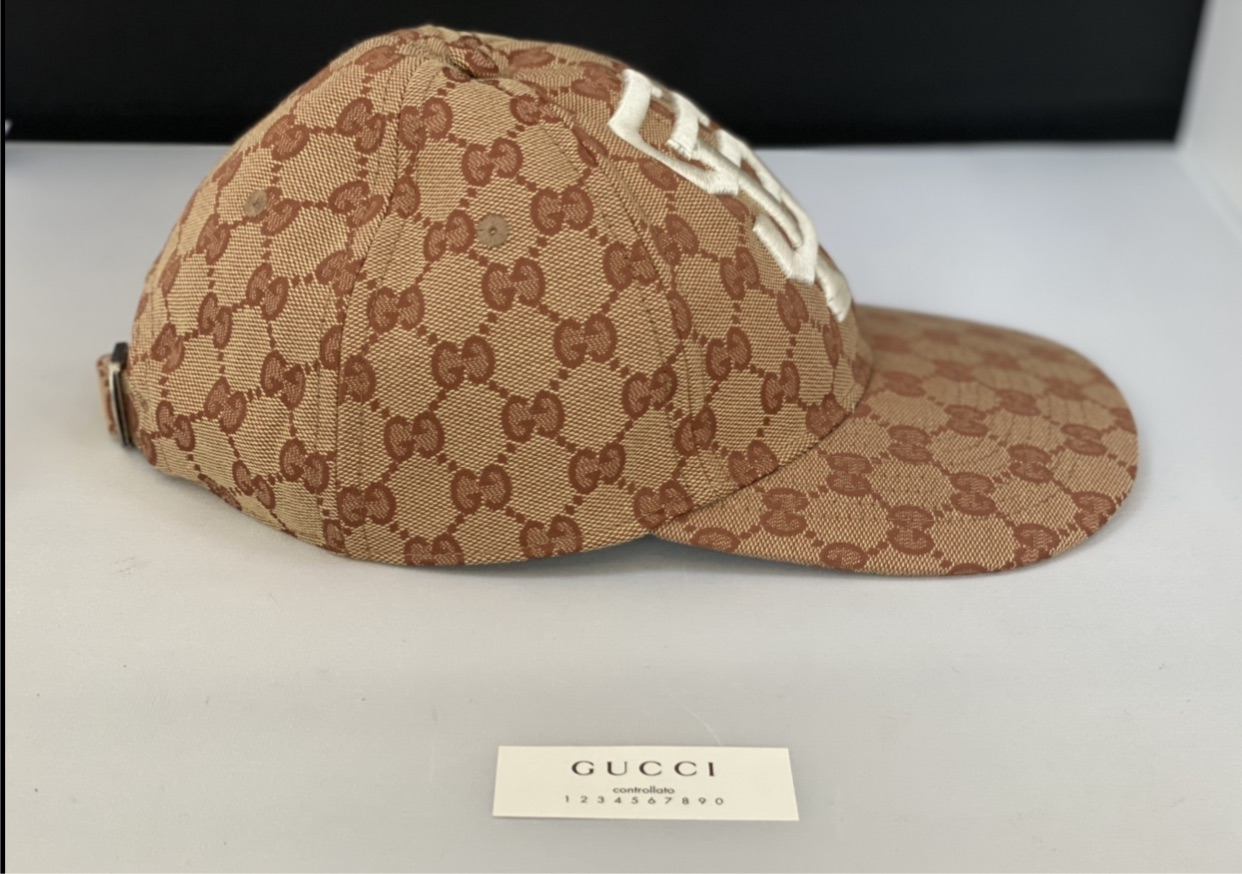 Gucci Monogram SF Giants Baseball Hat is 100% of your money back. crafted from 100% cotton in Italy This comfortable, simplistic cap is crafted of traditional beige and brown Gucci GG monogram cotton canvas with an adjustable panel strap.