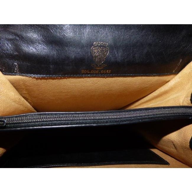 For sale is a vintage, AMAZING, early Gucci, RARE, black smooth leather, rectangular, envelope top with push and slide clasp, two-way style, cross body, handheld, or shoulder purse with a top handle and multiple compartments and pockets to keep you organized- a perfect travel bag! This amazing black, everyday purse will never go out of style and with all of the wallet type pockets, it would make it a great purse for travelling, too!