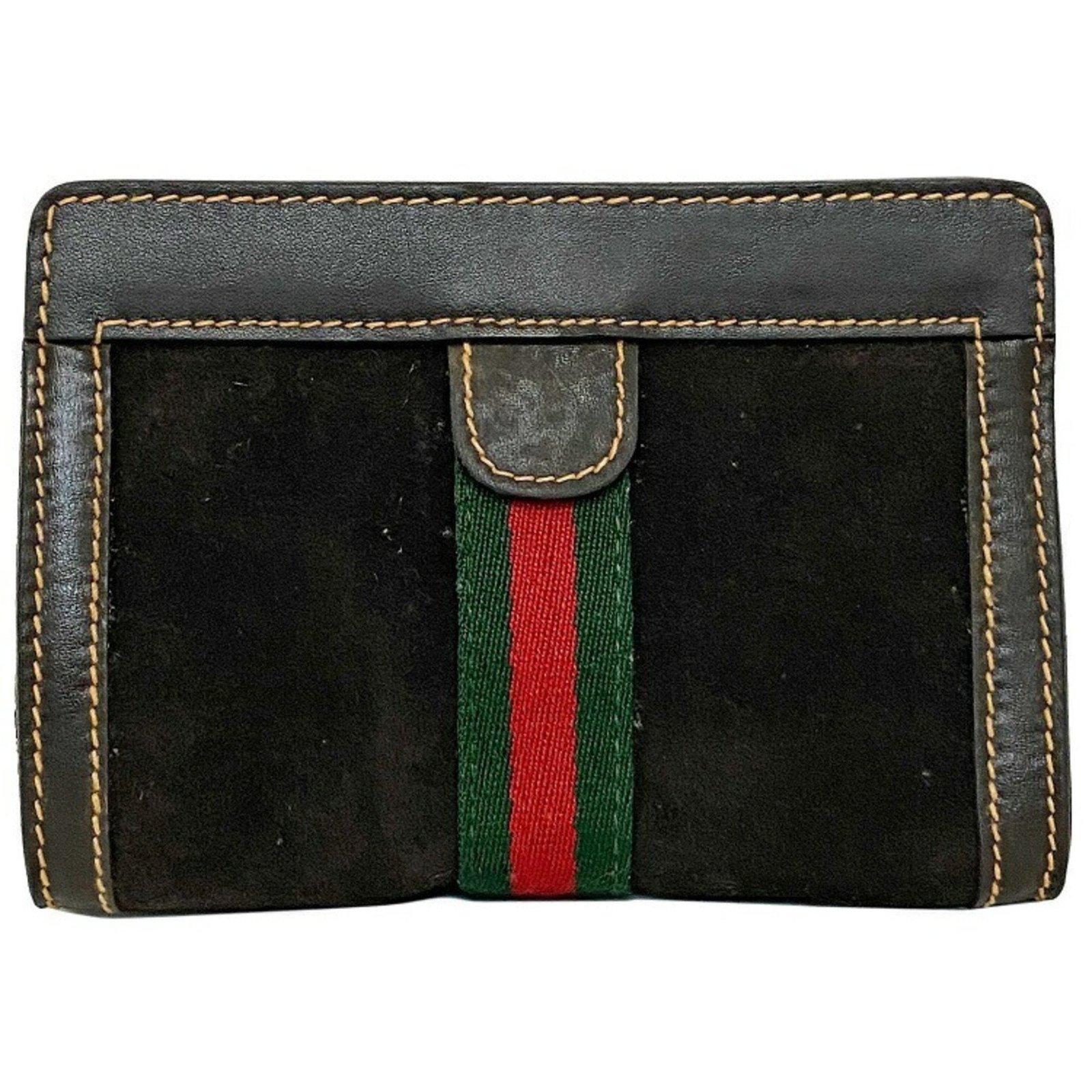 Gucci Perfume Pouch Brown Green Red Shelly 506 Leather Suede GUCCI PARFUMS Magic Tape Clutch Stripe Ladies
