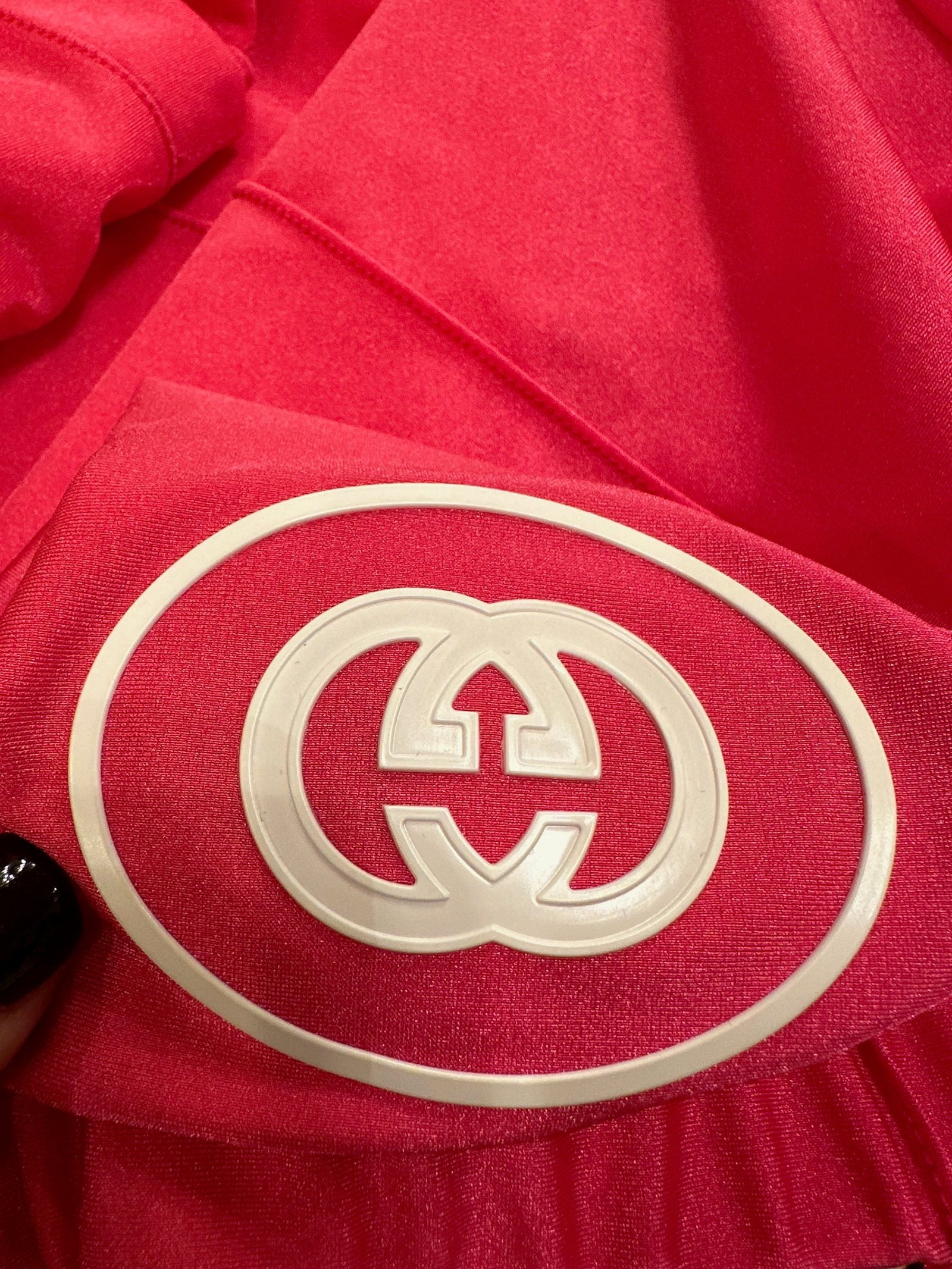 This Gucci Pink GG Logo Stirrup Leggings features the signature Gucci GG logo in a timeless pink hue. Featuring zip closure at the ankles, you’ll enjoy maximum comfort with a stylish touch.
