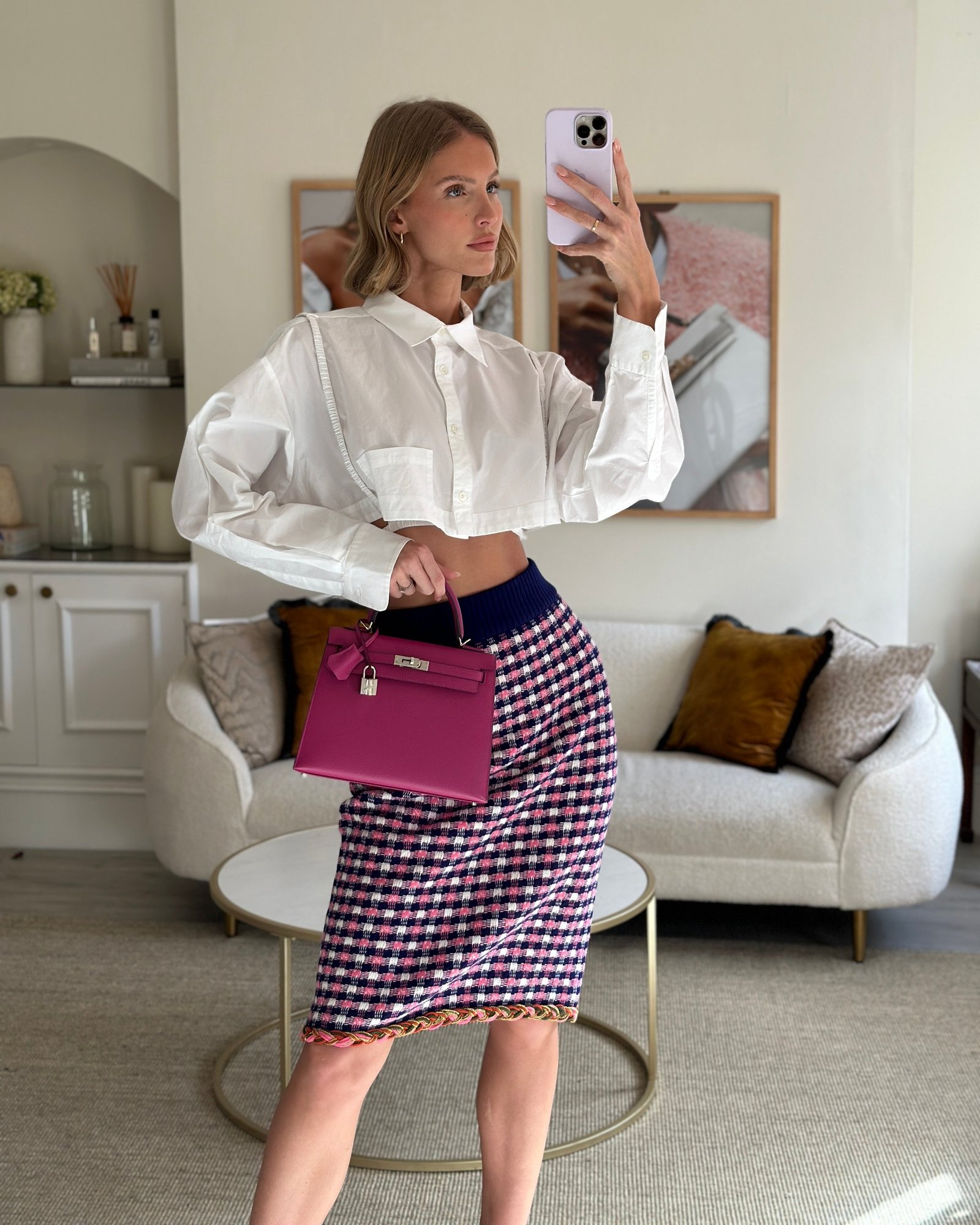 Gucci Pink, White and Purple Check Knitted Midi Skirt with Metallic Hem Size M (UK 10)