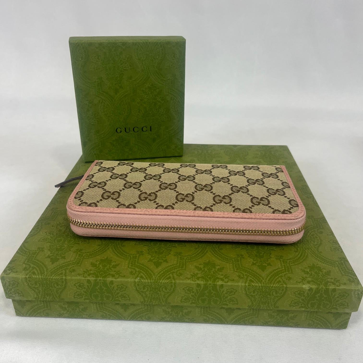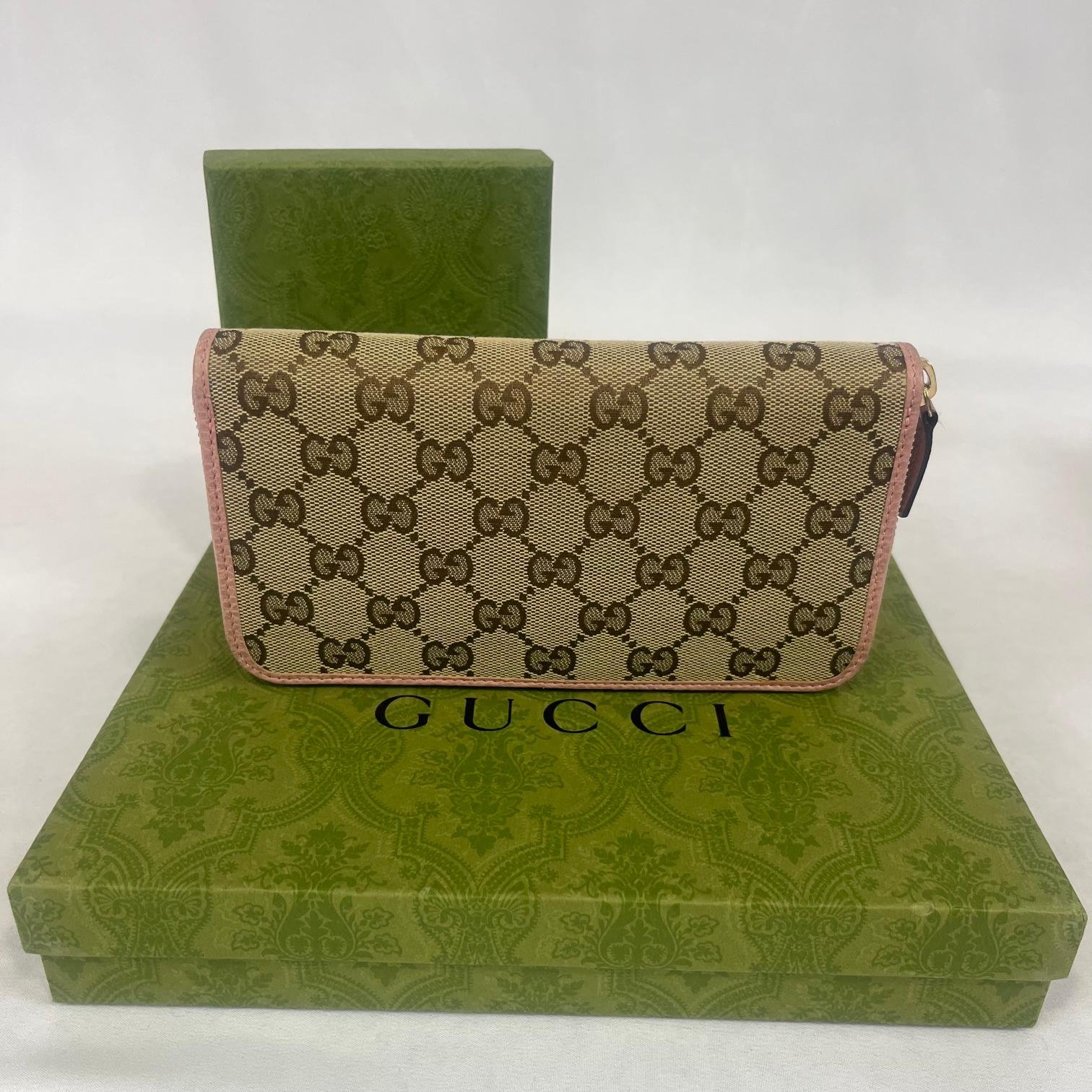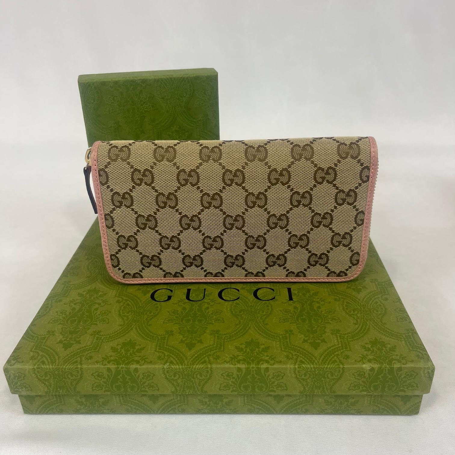 Accessoire idéale pour compléter votre maroquinerie Gucci. Ce portefeuille en toile GG est conçu avec une fermeture zippée circulaire, 12 poches plaquées pour cartes et d’une poche zippée pour la monnaie.