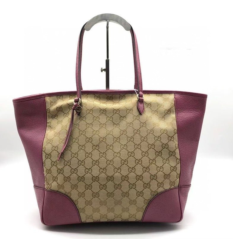 This stylish preloved Gucci GG Canvas Pink Leather Tote Bag is a timeless piece for any collection. Crafted from durable canvas with pink leather accents, this tote is perfect for those who love vintage Gucci bags. The large interior provides ample space for all essentials, making it a standout among used designer handbags. The silver hardware and classic GG monogram enhance its chic appeal. Perfect for everyday use or special outings.
