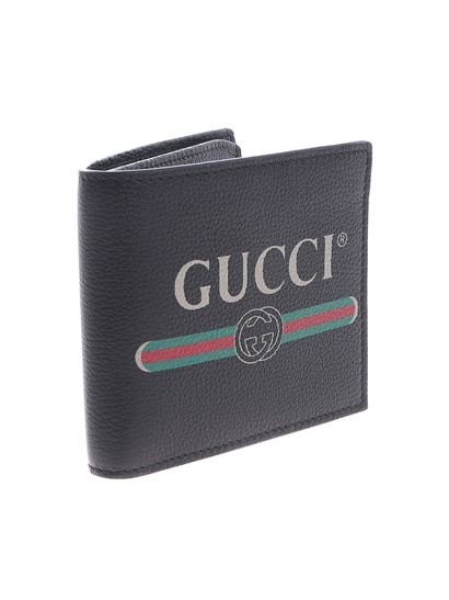 The Gucci Printed Logo Leather Wallet In Black is crafted in Italy from supple leather. This Bifold style wallet features Gucci’s 1980’s logo in gold against a black background. This accessory opens to eight card holders, two slip pockets, and two bill slots.