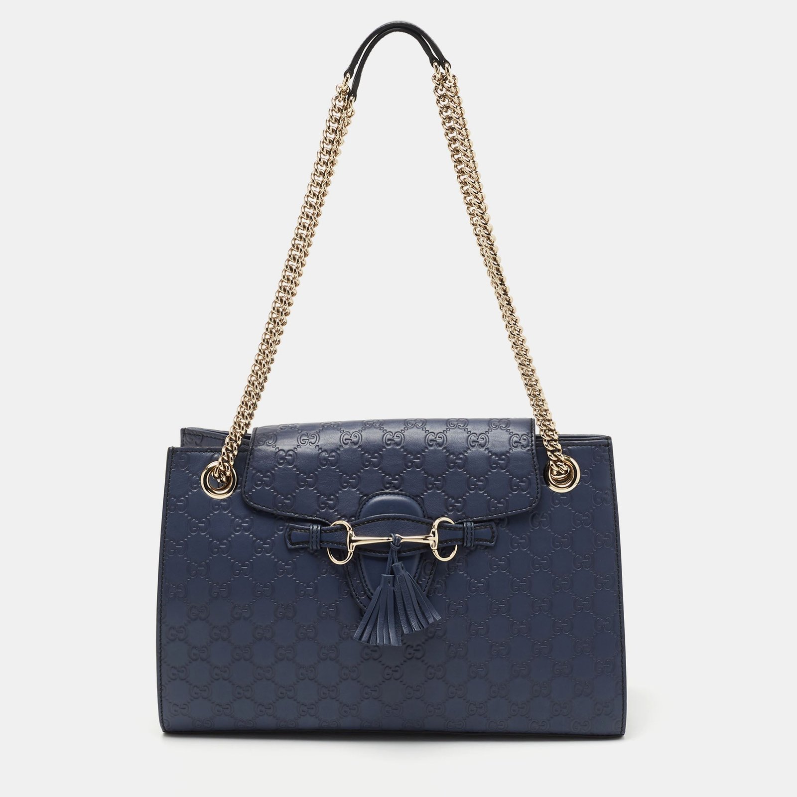 Guccis handbags are not only well crafted but they are also coveted because of their high appeal. This Emily Chain shoulder bag like all of Guccis creations is fabulous and closet worthy. It has been crafted from Guccissima leather and styled with a flap that leads the way to a fabric interior.