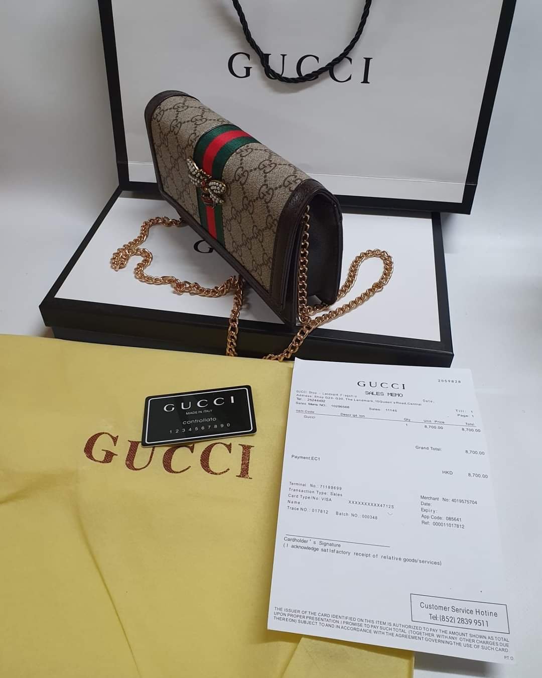 This product comes in a branded dust bag and paper bag only .No Branded box📦