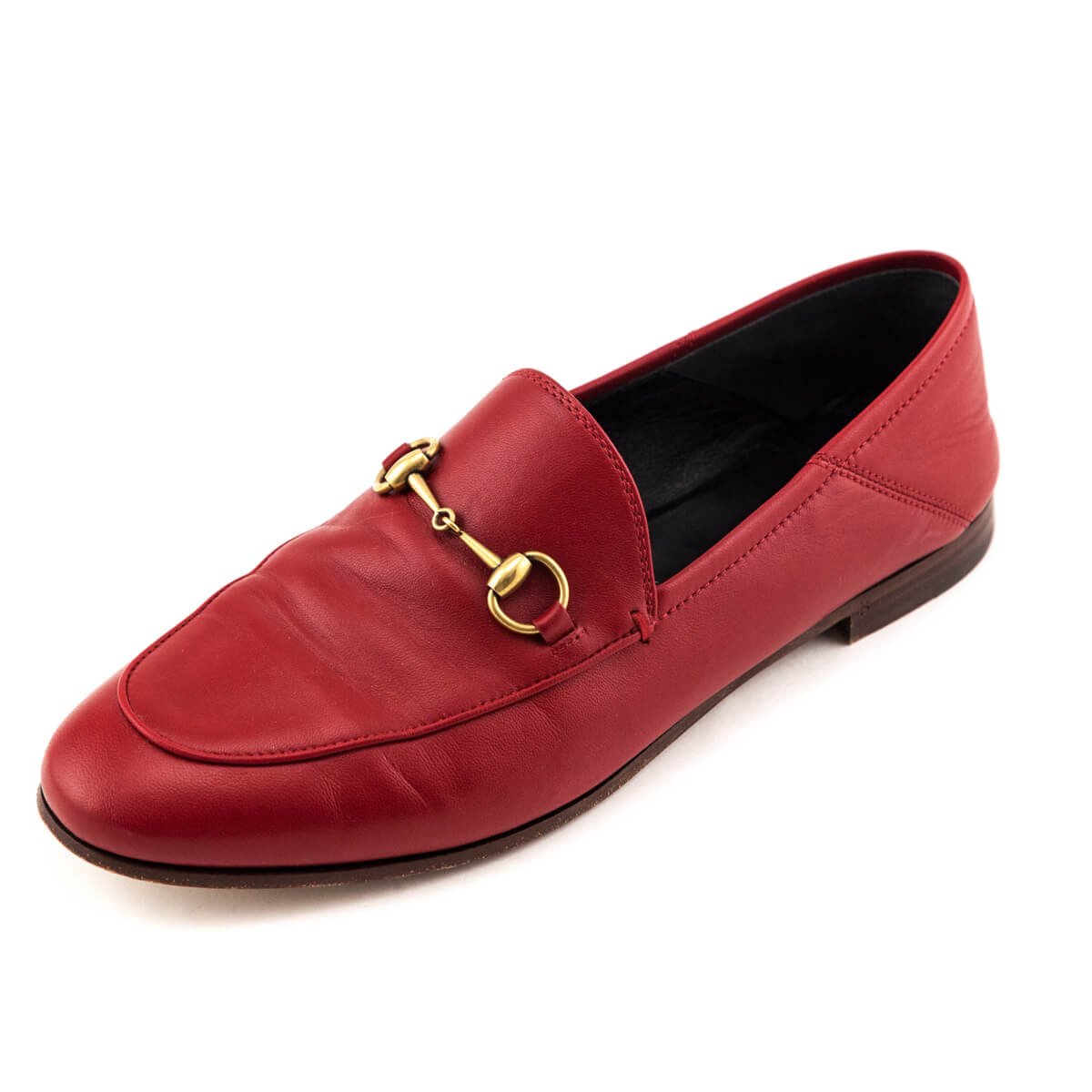 With a cool versatility that quickly turns these Gucci loafers into a pair of designer mules, these secondhand Gucci Brixtons are a classic addition to your work-to-play wardrobe. Crafted in Italy, these designer loafers feature a smooth red leather exterior and a subtle stacked brown leather heel. Each vamp is adorned with the Italian fashion house’s signature gold-toned horsebit detail for instant recognition. The back of the shoes offer a collapsible paneling into the red leather, allowing you to tuck in the leather at the heels for a backless mule styling. Pair these Gucci Brixton Loafers/Mules with an eyelet blouse, denim skirt, and your favorite designer tote for a chic yet relaxed look.