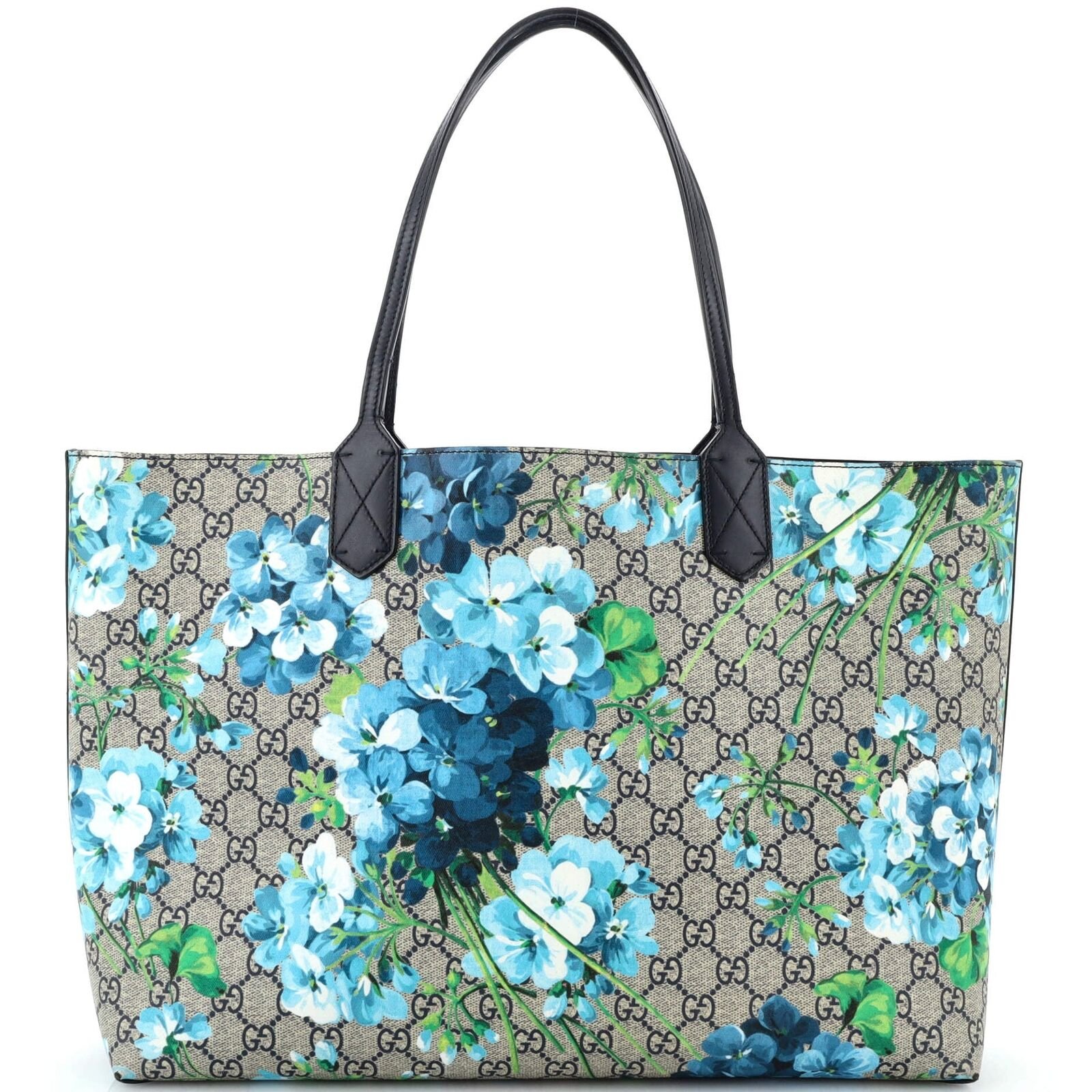Elevate your style with the Gucci Reversible Tote Blooms GG Print Leather Medium. This versatile tote features the iconic GG print on one side and a vibrant floral print on the other, allowing you to switch up your look effortlessly. Crafted from high-quality leather, this medium-sized tote offers ample space for your essentials while exuding luxury and sophistication.