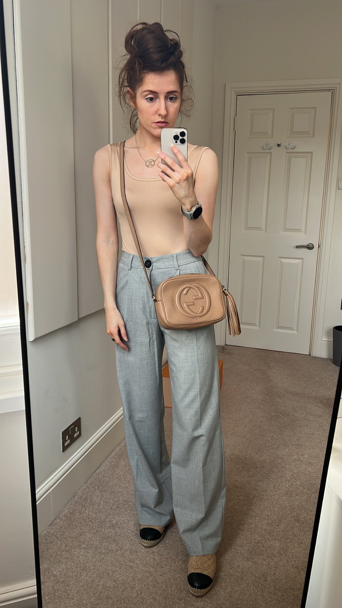 Gucci Soho Disco in Rose Beige Leather with pale gold hardware. This practical, cross body, camera style bag is compact in size but still fits a reasonable amount. Can be over shoulder or cross body. Gucci’s most popular style and goes with any outfit, dressed up or down.