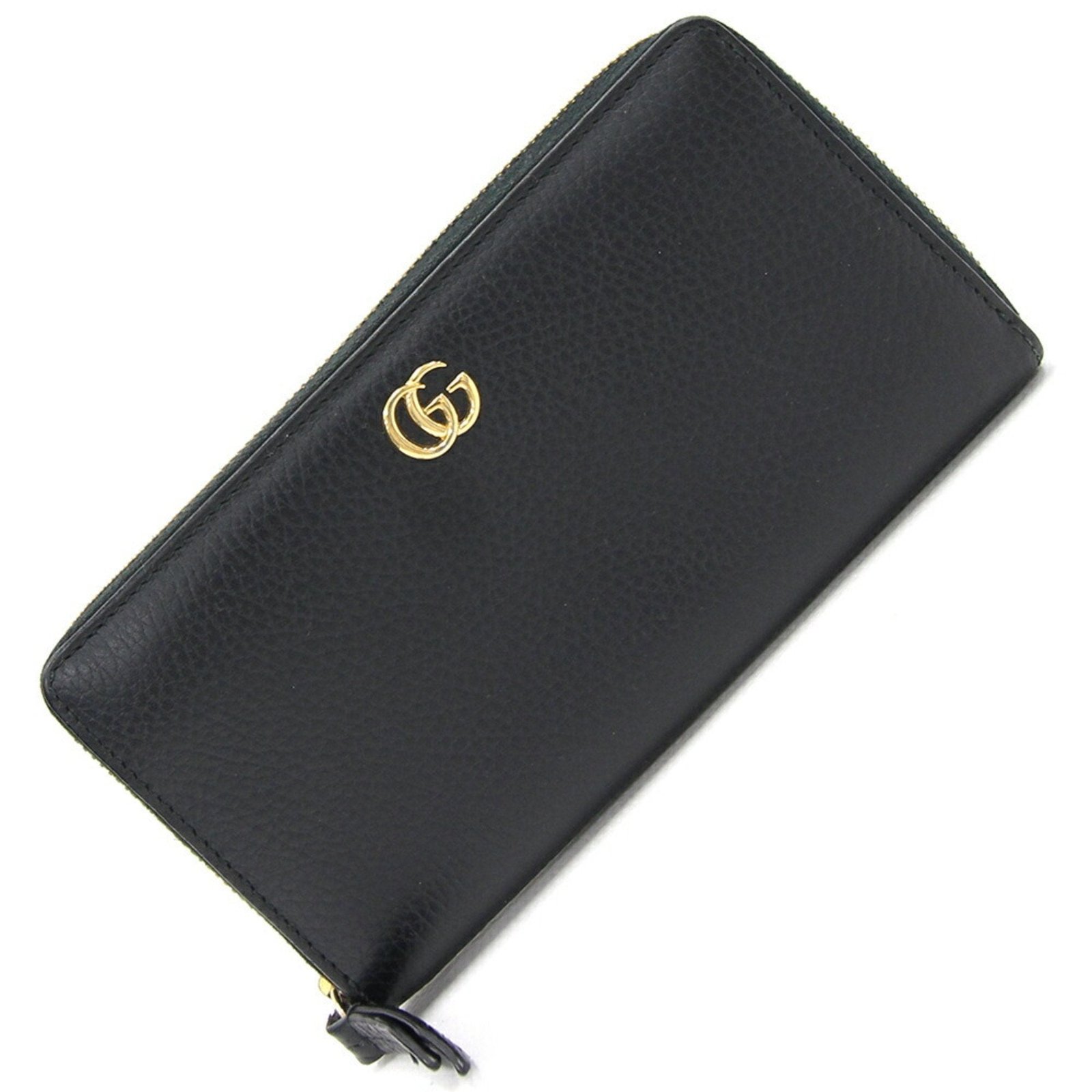 Gucci Round Long Wallet GG Marmont Zip Around 456117 Black Leather Women’s GUCCI