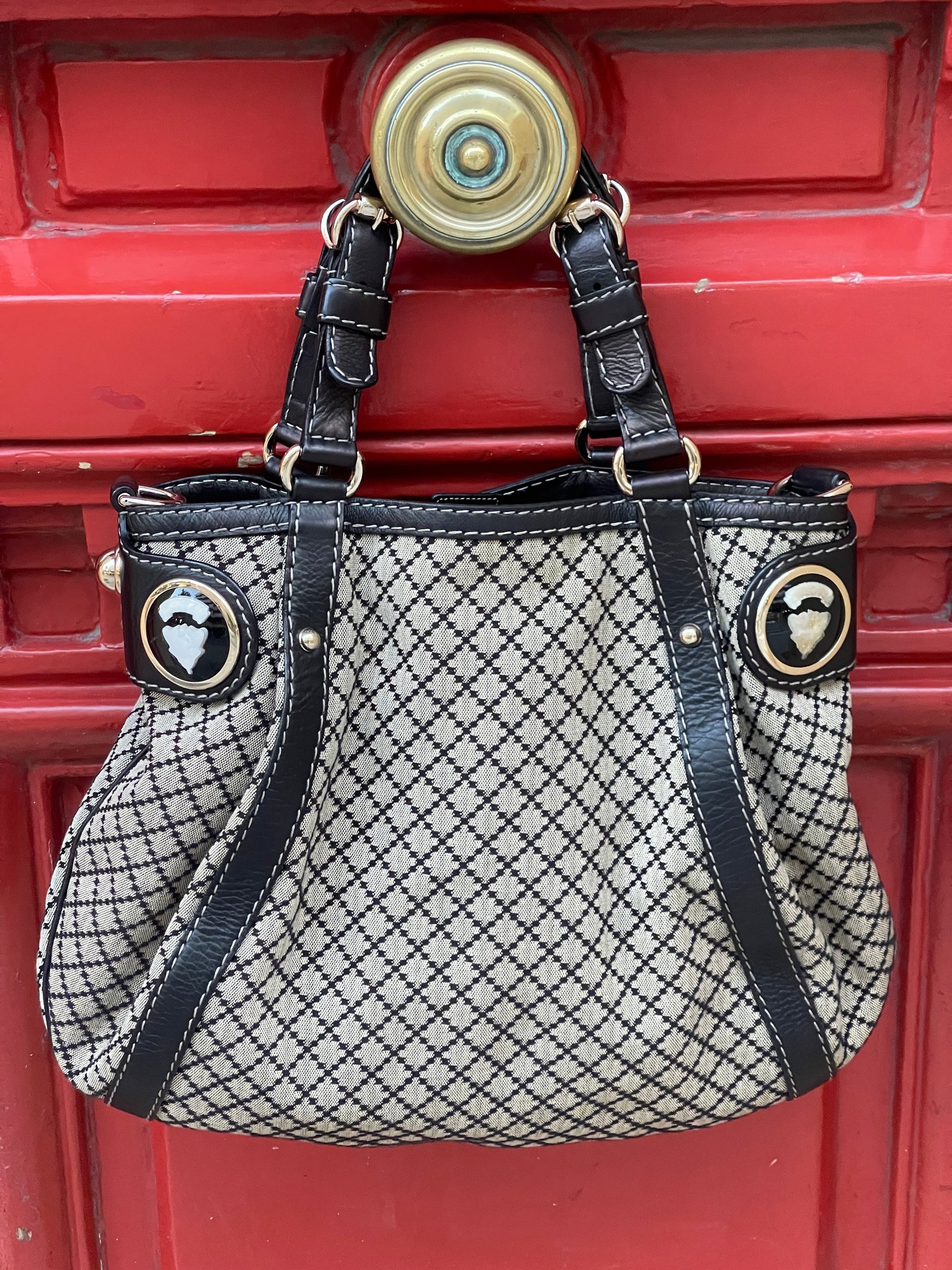 •Couleur : toile beige et marron, avec cuir marron
